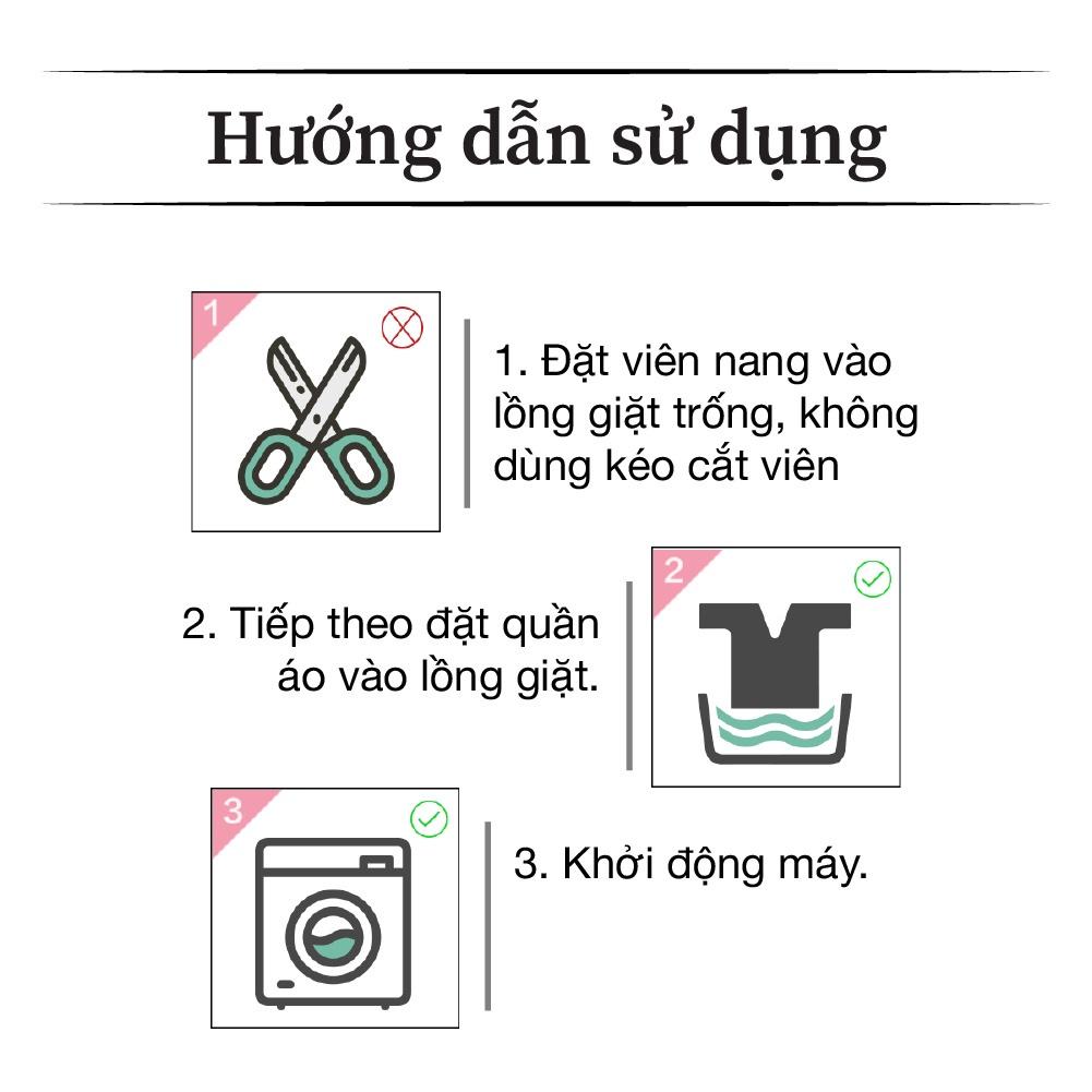 ƯU ĐIỂM NỔI BẬT Chỉ cần thả 1 viên vào lồng giặt, bạn sẽ trải nghiệm 4 lợi ích giặt giũ mà không cần xách nặng hay đo đạc: • Tiện Lợi Tối Đa: Thao