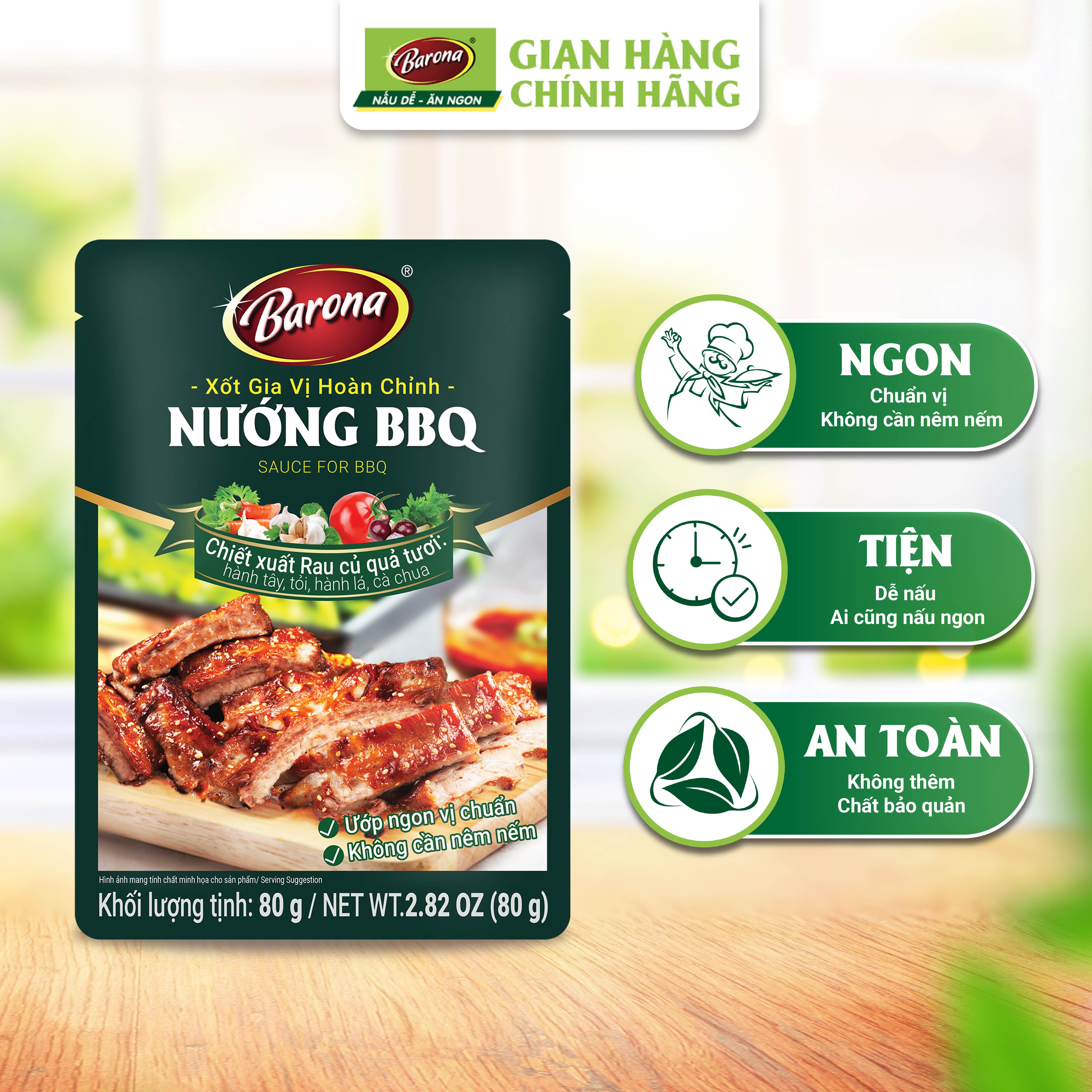 XỐT GIA VỊ HOÀN CHỈNH BARONA THỊT NƯỚNG NGŨ VỊ 80G - Trọng lượng: 80gr / gói - Hạn sử dụng: 18 tháng kể từ ngày sản xuất Xốt Gia Vị Hoàn Chỉnh Barona