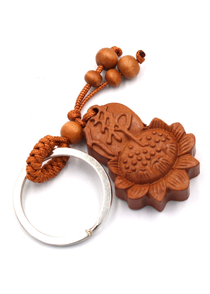 Móc treo chìa khóa, phôi triện gỗ đào khắc kinh phật