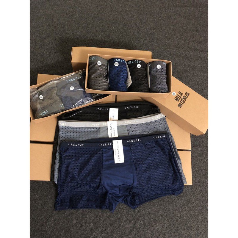 Quần lót nam thông hơi - HỘP 4 CHIẾC - Quần sịp đùi nam Hàng loại 1 Chất Liệu: Siêu mềm, siêu mịn, co giãn thoải mái, thông thoáng mát lạnh - Size XL :45-60kg