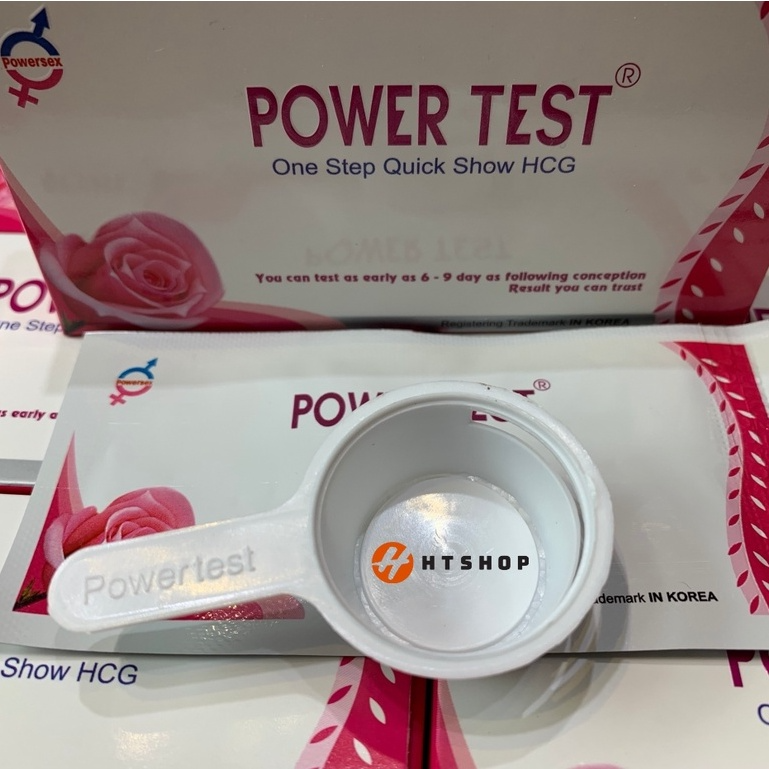 Tên sản phẩm: Que thử thai PowerTest Kích thước test: rộng 5mm Tính năng: Phát hiện thai sớm sau 6 -9 ngày trứng rụng ƯU ĐIỂM: Phát hiện thai sớm sau 6 -9 ngày