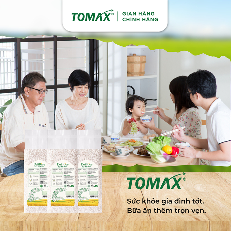COMBO 3 TÚI 1KG GẠO ĐÀI THƠM Tomax - TƠI XỐP, DẺO THƠM, THƠM DỊU - TOMAX