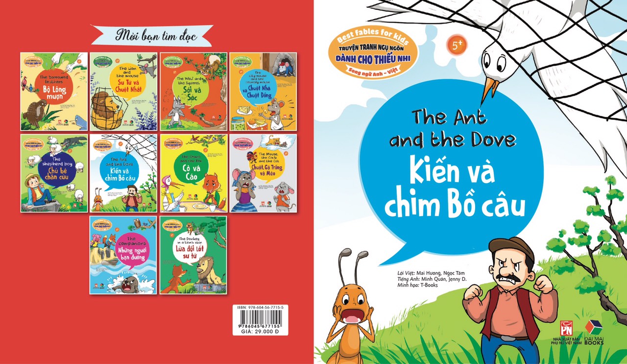 Combo 4 cuốn truyện tranh song ngữ - Truyện tranh ngụ ngôn dành cho thiếu nhi song ngữ Anh - Việt ( Kiến và chim + sư tử và chuột nhắt+ sói và sóc + chuột , gà trống và mèo )