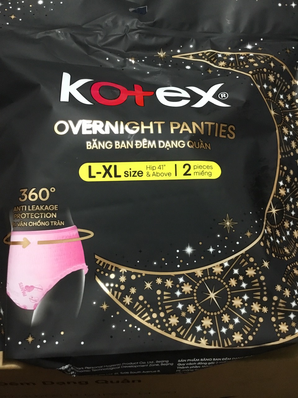 Mua tại TiktokShop sẽ che tên sản phẩm khi đóng gói. Băng ban đêm dạng quần đột phá MỚI với thiết kế vừa vặn và chống tràn 360 độ cho bạn cảm giác an toàn và thoải mái suốt đêm. THÔNG TIN SẢN PHẨM Kotex Băng Ban Đêm Dạng Quần cỡ M/L 2 miếng Thành phần: Màng vải không dệt, Bột giấy, Hạt siêu thấm, PE, Màng thun lưng co giãn, Màng đáy, Thun đàn hồi, Keo cấu trúc. Đặc điểm nổi bật