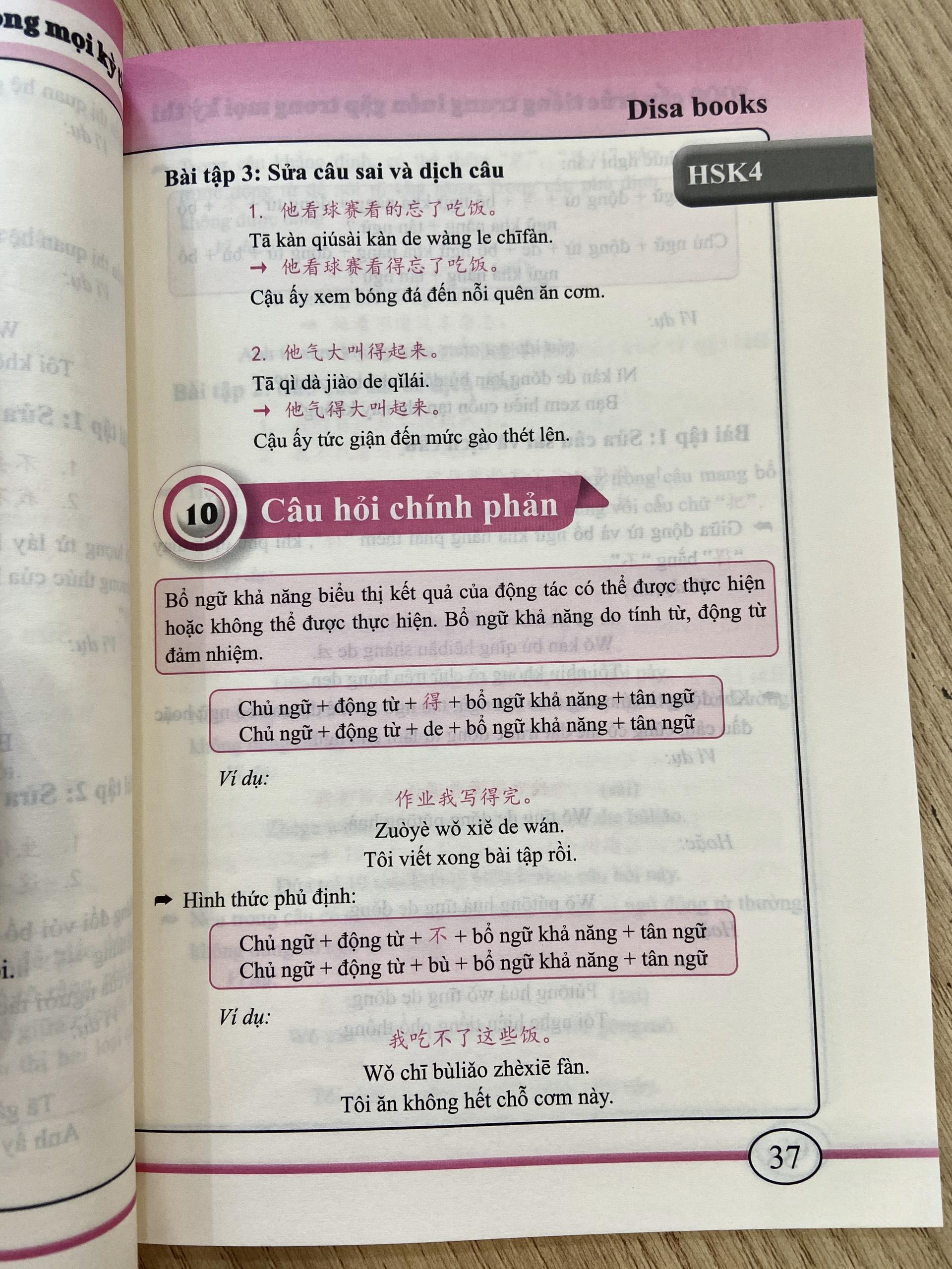 1.BÀI TẬP DỊCH TRUNG VIỆT-VIỆT TRUNG CỦNG CỐ CẤU TRÚC CỐ ĐỊNH & NGỮ PHÁP (Dựa theo ngữ pháp tiếng Hán Sơ trung cấp hiện đại" Loại bìa Bìa mềm Số trang 340 SKU