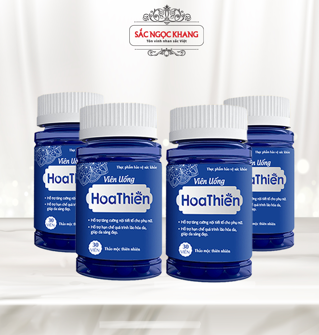 Mua tại TiktokCombo gồm 4 hộp viên uống Hoa Thiên Viên uống Hoa Thiên dựa trên sự phối hợp từ tinh hoa Y học cổ truyền, với các vị dược liệu quý như tinh chất mầm đậu tương, collagen, quy râu, ngưu tất, thục địa, ích mẫu giúp bổ sung nội tiết, hỗ trợ 3 vấn đề: tăng cường sinh lý nữ, chống mất ngủ và làm đẹp da. Viên uống Hoa Thiên - Tăng cường nội tiết, bí quyết trẻ đẹp Dựa trên sự phối hợp từ tinh hoa Y học cổ truyền, với các vị dược liệu quý như tinh chất mầm đậu tương, collagen, quy râu, ngưu tất, thục địa, ích mẫ Viên uống Hoa Thiên giúp bổ sung nội tiết, hỗ trợ 3 vấn đề: tăng cường sinh lý nữ, chống mất ngủ và làm đẹp da. Xuất xứ : Việt Nam Xuất xứ thương hiệu : Hoa Thiên