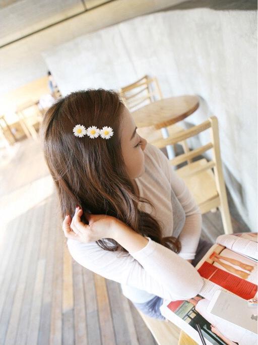 Kiểu tóc đơn giản với kẹp hoa sứ