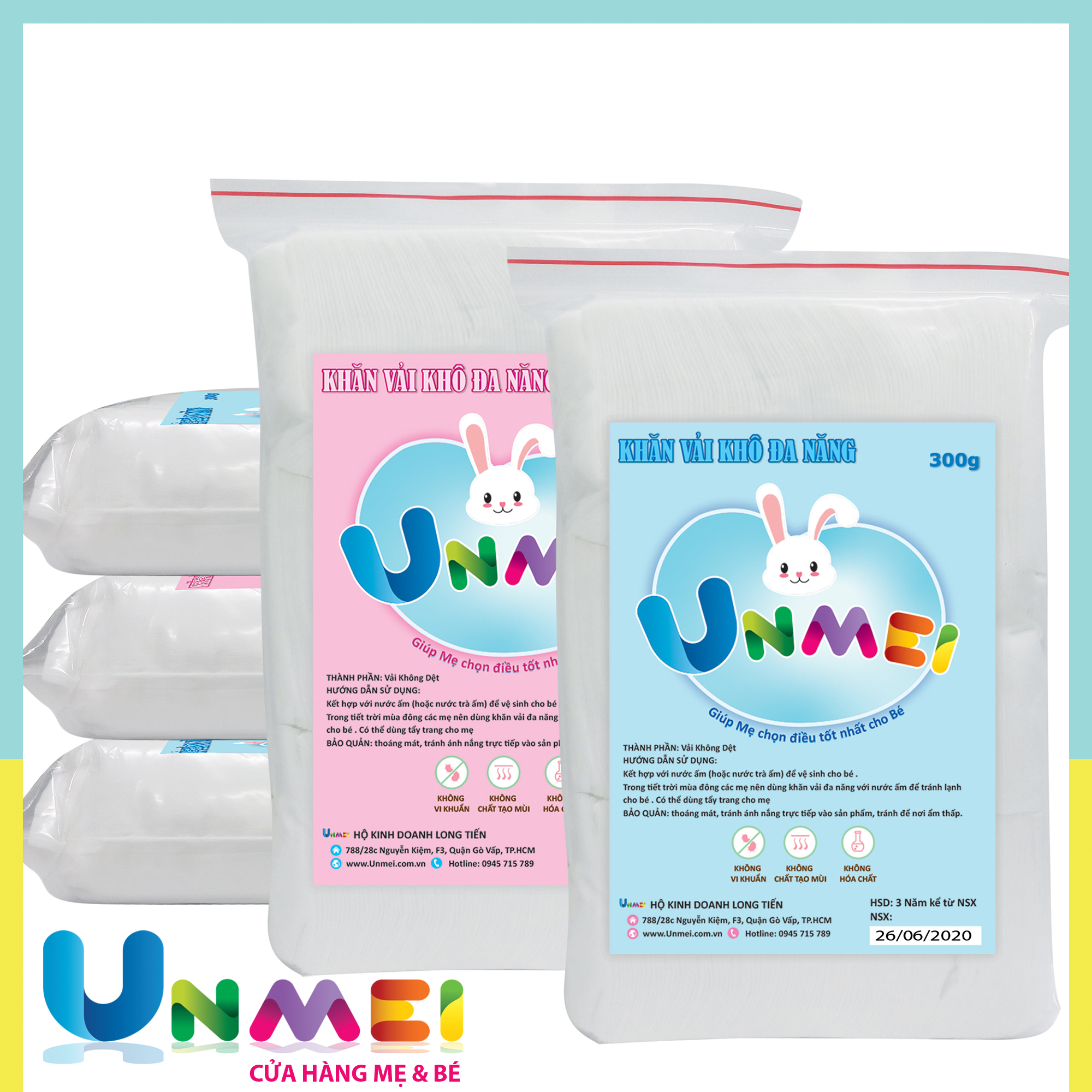 Mua tại TiktokLốc 5 Gói Khăn Vải Khô Unmei Kích thước: 15x20cm(+-2cm) Thương Hiệu: Unmei Xuất xứ: Việt Nam Được làm từ sợi vải không dệt, rất dai, mềm, mịn và có độ đàn hồi cao. Dạng khô, thích hợp cho làn da nhạy cảm nhất. An toàn cho bé, tiết kiệm cho mẹ. Dùng cho bé: Vệ sinh da cho bé khi thay tã, bỉm Dùng cho mẹ: Tẩy trang sau trang điểm