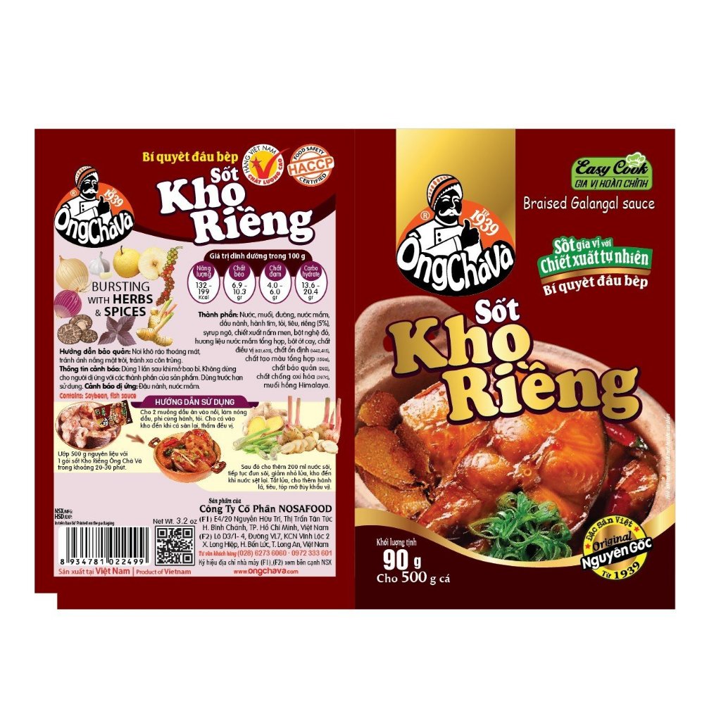 Sốt Kho riềng Ông Chà Và 90g là loại sốt sệt, sánh, đã chứa đủ gia vị, tiện lợi, chỉ cần bóc ra ướp với thịt và chế biến các món kho. Giữ trọn vị cay thơm, mang đến sự tiện lợi cho người đứng bếp cùng món thịt thơm ngon đặc trưng cho mỗi bữa cơm gia đình người Việt.