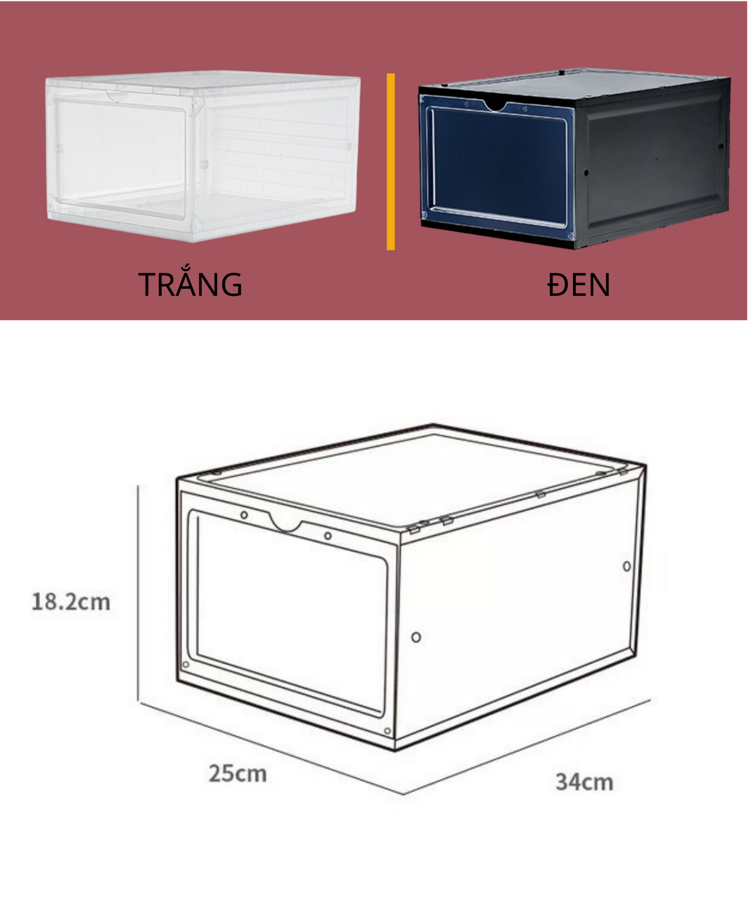 Hộp bằng nhựa cứng kết hợp nhựa dẻo. Với màu sắc sang trọng. Kiểu dáng rất tiện lợi và dễ vệ sinh với cửa nằm phía đằng trước. kích thước: 34x25x18cm Đựng vừa các giày