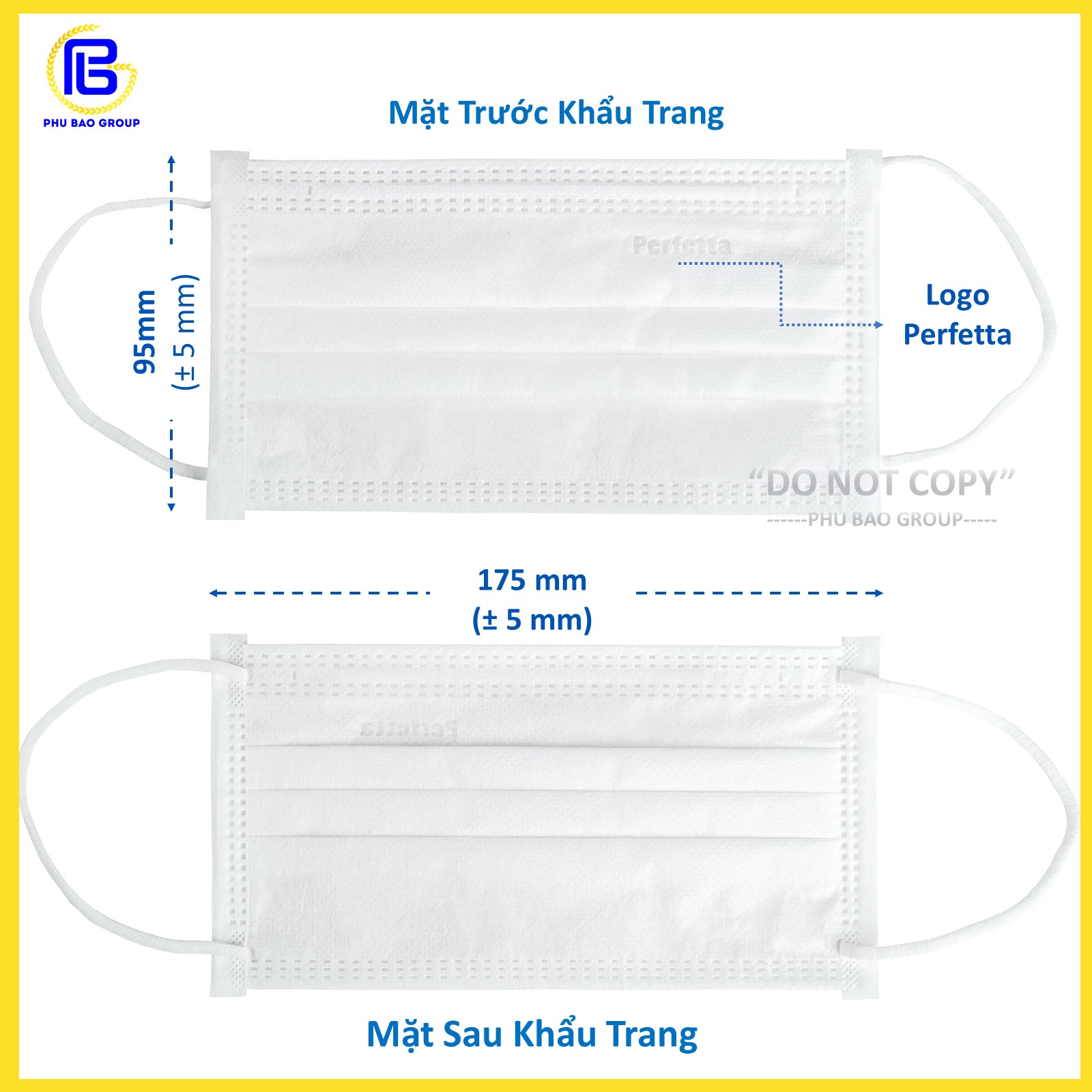 Mua tại TiktokKhẩu trang y tế 3 lớp Perfetta Moderate Trắng, 50 cái, sản phẩm có đặc tính kháng khuẩn cao, mềm mượt và an toàn cho sức khoẻ của mọi thành viên trong gia đình. Đặc biệt sản phẩm có lớp ngoài chống thấm nước, cực kỳ tiện lợi dù là khi đi trời mưa và với thiết kế đầy thông minh với thanh tựa mũi cố định và dây thun co giãn 2 bên. Giúp tạo sự thoải mái tuyệt đối, không bị gò bó cho người sử dụng.