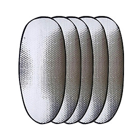 THÔNG TIN SẢN PHẨM - Kích thước:Dài 80cm, phần rộng nhất 36cm - Số lượng: 5 Miếng - Chất liệu: Nilon phủ lớp tráng bạc Tấm lót chống nắng yên xe máy được làm bằng