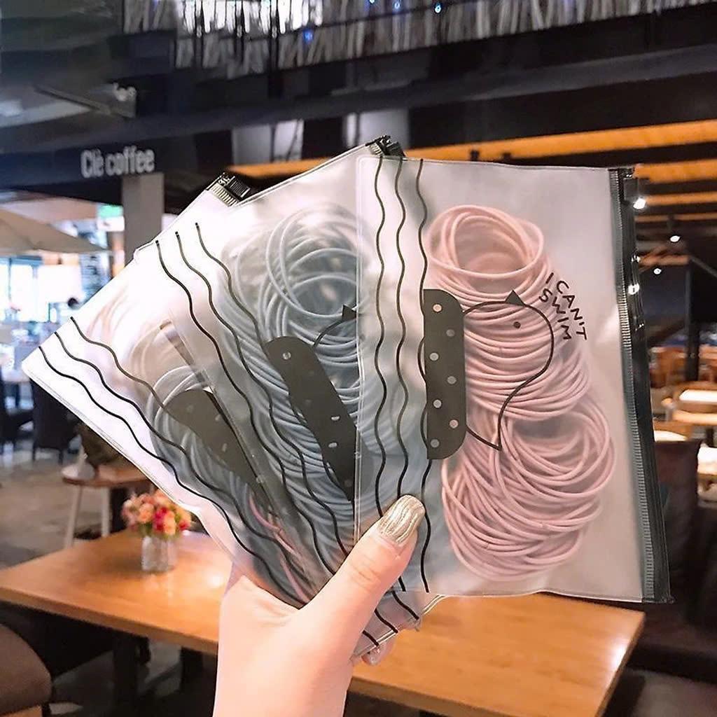 ✨Combo 5 Set 100 dây chun buộc tóc trơn nhiều màu co giãn tốt đựng trong túi zip tiện lợi, có thể tái sử dụng Nhung Voi Nữ