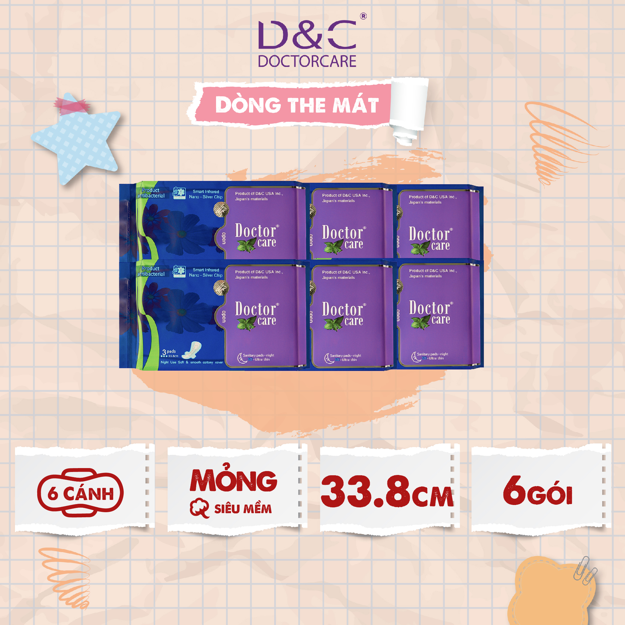 ✨Combo 6 Băng vệ sinh ban đêm Doctor Care tinh chất thảo dược 33.8cm siêu thấm hút