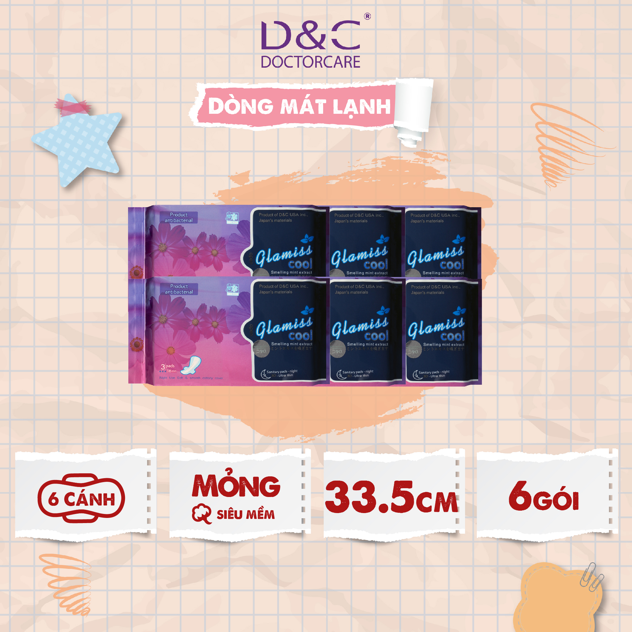 ✨Combo 6 Băng vệ sinh ban đêm Glamiss Cool thảo dược 33.8cm siêu mát siêu khô thoáng