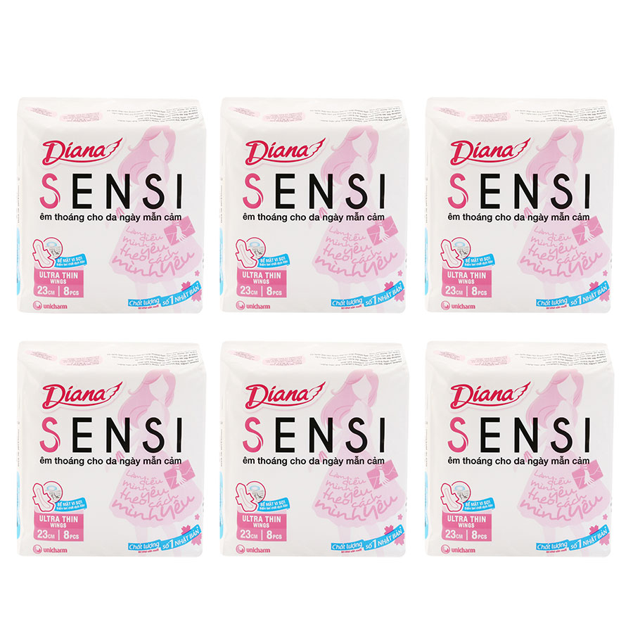- Combo 6 Băng Vệ Sinh Diana Sensi Siêu Mỏng Cánh (Gói 8 Miếng) là dòng băng vệ sinh dùng hàng ngày của thương hiệu Diana giúp bảo vệ tối ưu cho phái đẹp, ngăn