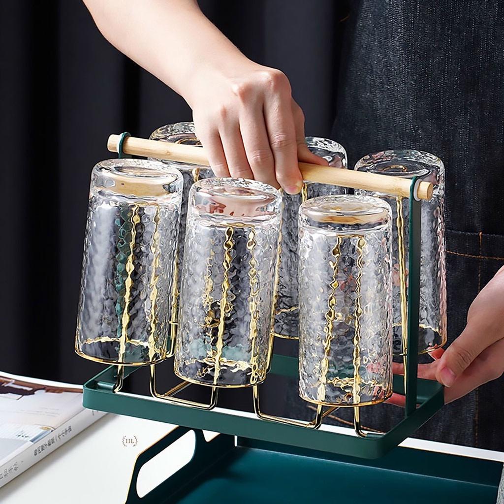 Thông tin sản phẩm: Combo bao gồm 1 giá úp cốc và 6 cốc thủy tinh Được làm bằng vật liệu kim loại sơn chống gỉ. Giá treo cốc để chứa đến 6 cốc. Thiết