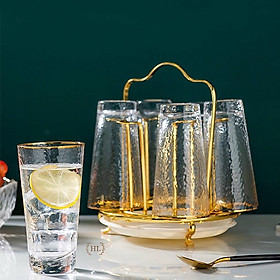 Combo Bộ 6 cốc thủy tinh cao cấp kèm giá úp tròn có khay hứng Combo gồm: 1 bình 6 cốc cốc 1 giá úp hươu 1 khay vương miện