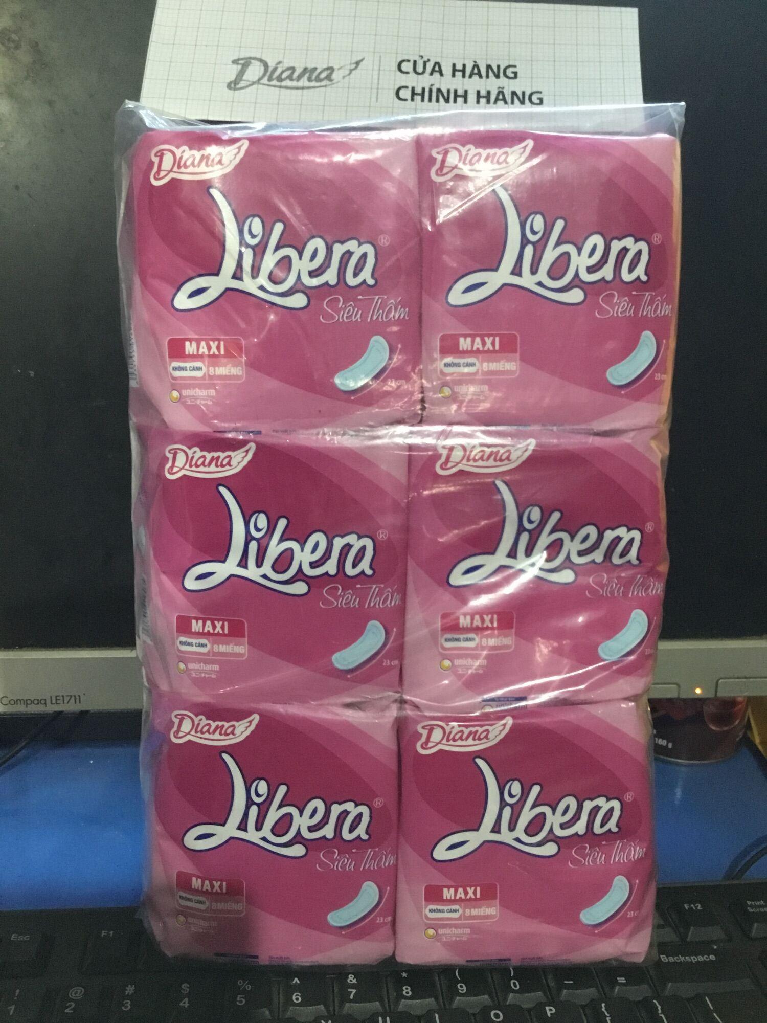 Mua tại TiktokCombo 6 Gói Băng Vệ Sinh Diana Libera Siêu Thấm Maxi Không Cánh (Libera Dày Không Cánh)23cm-8 Miếng/Gói -Date luôn mới