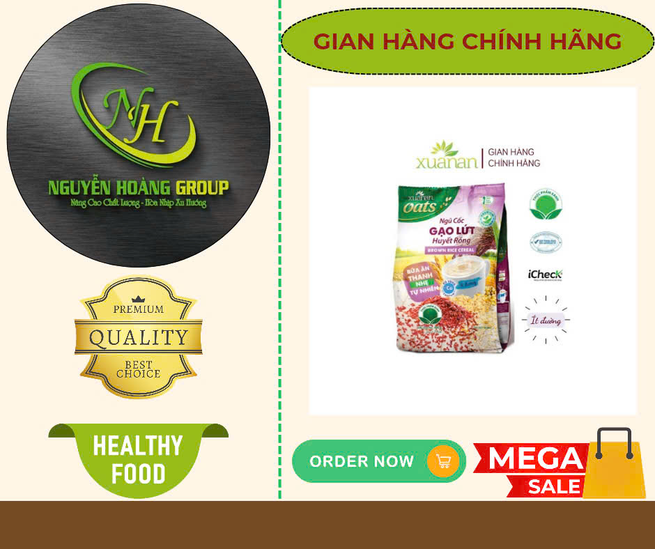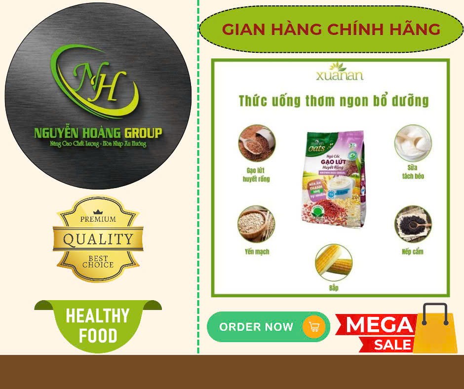 Mua tại TiktokThành Phần: Gạo lứt huyết rồng , Yến Mạch , Ngô , Đậu Xanh , lúa mạch , múa mỳ , canxi Công dụng : Trong ngũ Cốc có đường ISOMALT : Đây là loại dường chiết xuất từ củ cải đường , được viện dinh dưỡng và trung tâm nghiên cứu bệnh đái tháo đường khuyên dùng => Rát tốt cho sức khỏe , phòng bệnh mãn tính đặc biệt là bệnh tiểu đường. Đối Tượng Sử dụng: