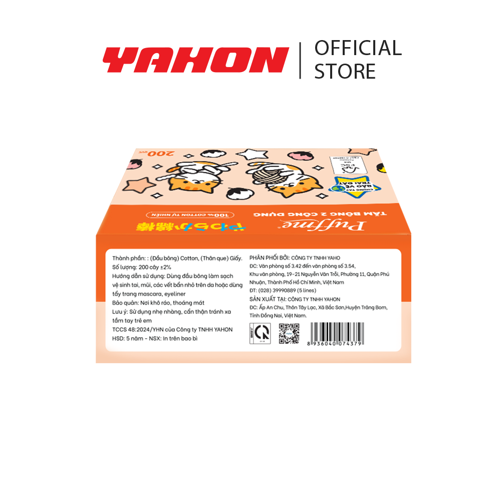HỘP TĂM BÔNG 2 CÔNG DỤNG PUFFME 200 QUE Hộp tăm bông 2 công dụng PUFFME 200 que sử dụng chất liệu an toàn cho người dùng: Đầu bông cotton mềm mại và sạch sẽ, không sử dụng keo hóa học trên đầu bông, giúp thấm hút tốt; Thân que giấy cứng cáp, thân thiện với môi trường. Cấu tạo tăm bông đặc biệt gồm có: - 1 đầu bông tròn đầy đặn, mềm xốp tự nhiên mang lại cảm giác êm ái khi sử dụng. - 1 đầu bông xoắn giúp tối ưu hiệu quả vệ sinh. Thành phần: (Đầu bông) Cotton, (Thân que) Giấy Quy cách: chiều dài tăm bông 75mm ±5%/que, 200 que/hộp Hướng dẫn dử dụng: Dùng đầu bông làm sạch vệ sinh tai, mũi, các vết bẩn nhỏ trên da hoặc dùng tẩy trang mascara, eyeliner Hạn sử dụng: 5 năm kể từ ngày sản xuất NSX: in trên bao bì #Puffme