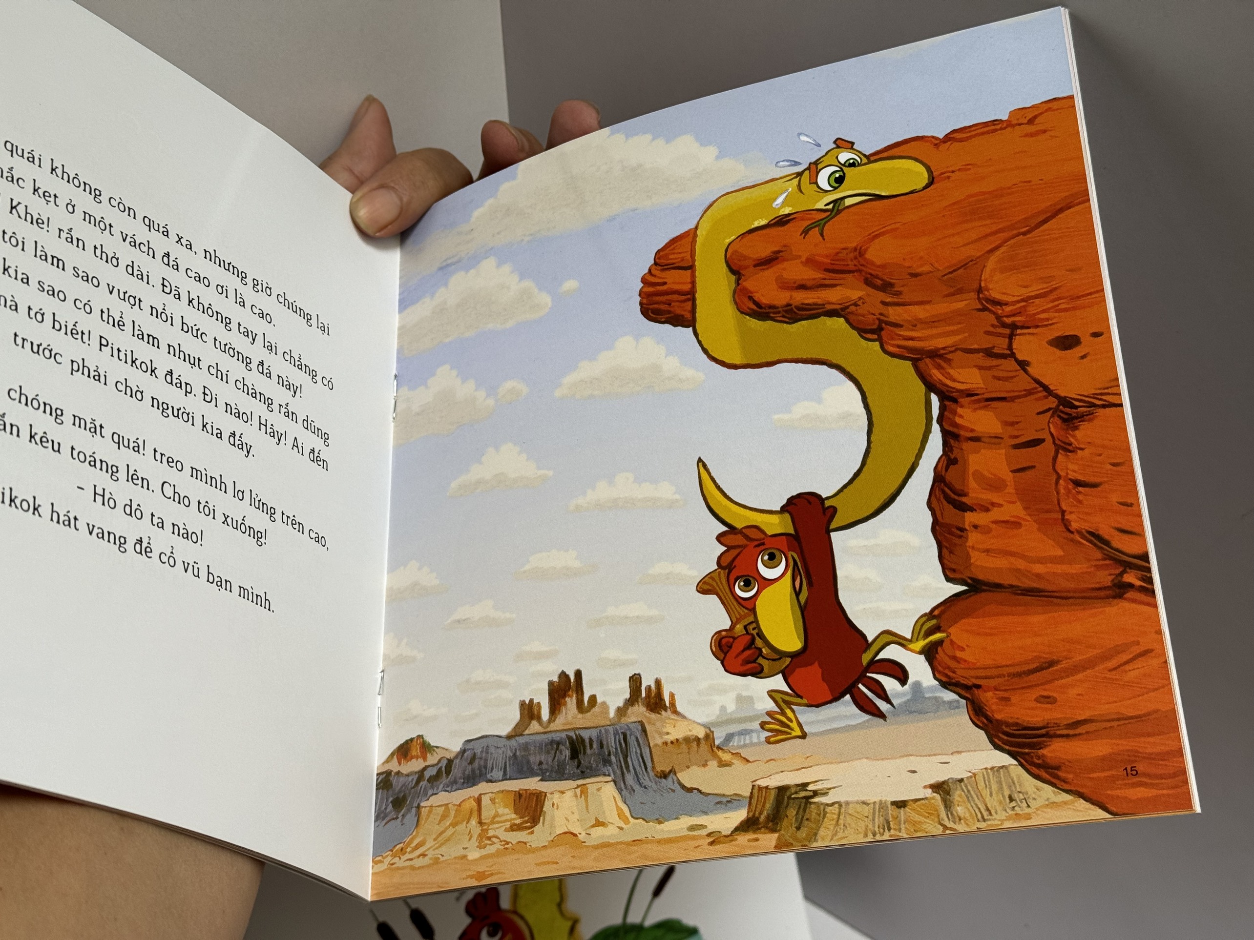 “Cúc cù léc cu!”, Pitikok chú gà giò đỏ ma lanh, lên đường giải cứu một chiếc lông vũ thần kỳ bị giam cầm giữa sa mạc.