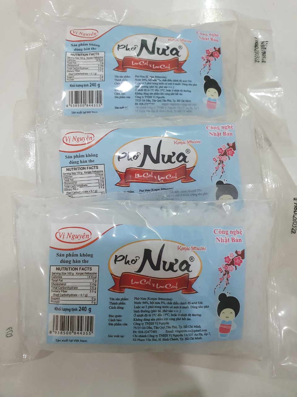 - Bảo quản: Nơi thoáng mát Những thực phẩm được làm từ bột Glucomanna có trong củ nưa, một chất xơ chứ không phải là tinh bột. Sản phẩm được sản xuất theo công nghệ Nhật Bản, không chất bảo quản. ️ THÀNH PHẦN: Phở nưa chiếm 97% chất xơ. Năng lượng 5-30kCal/100g ️ Cách sơ chế: mở hộp đổ bỏ nước muối ngâm, rửa qua bằng nước, thả vào nước sôi cho sôi lại 3-5′. Sau đó có thể chế biến đa dạng như Phở bình thường như làm Phở trộn, Phở xào, hoặc Phở nước, đặc biệt ăn lẩu với Phở cực chuẩn, vì đặc trưng của em nó là càng nấu lâu càng ngấm gia vị, đặc biệt là không hề trương hay nhũn, luôn luôn dai ngon. Phở có hàm lượng chất xơ rất cao, là loại củ có thành phần dinh dưỡng là 0 carb from sugar và gần như 0 kcal. phù hợp với mọi lứa tuổi, mọi chế độ ăn kiêng, kể cả DAS, Lowcarb.