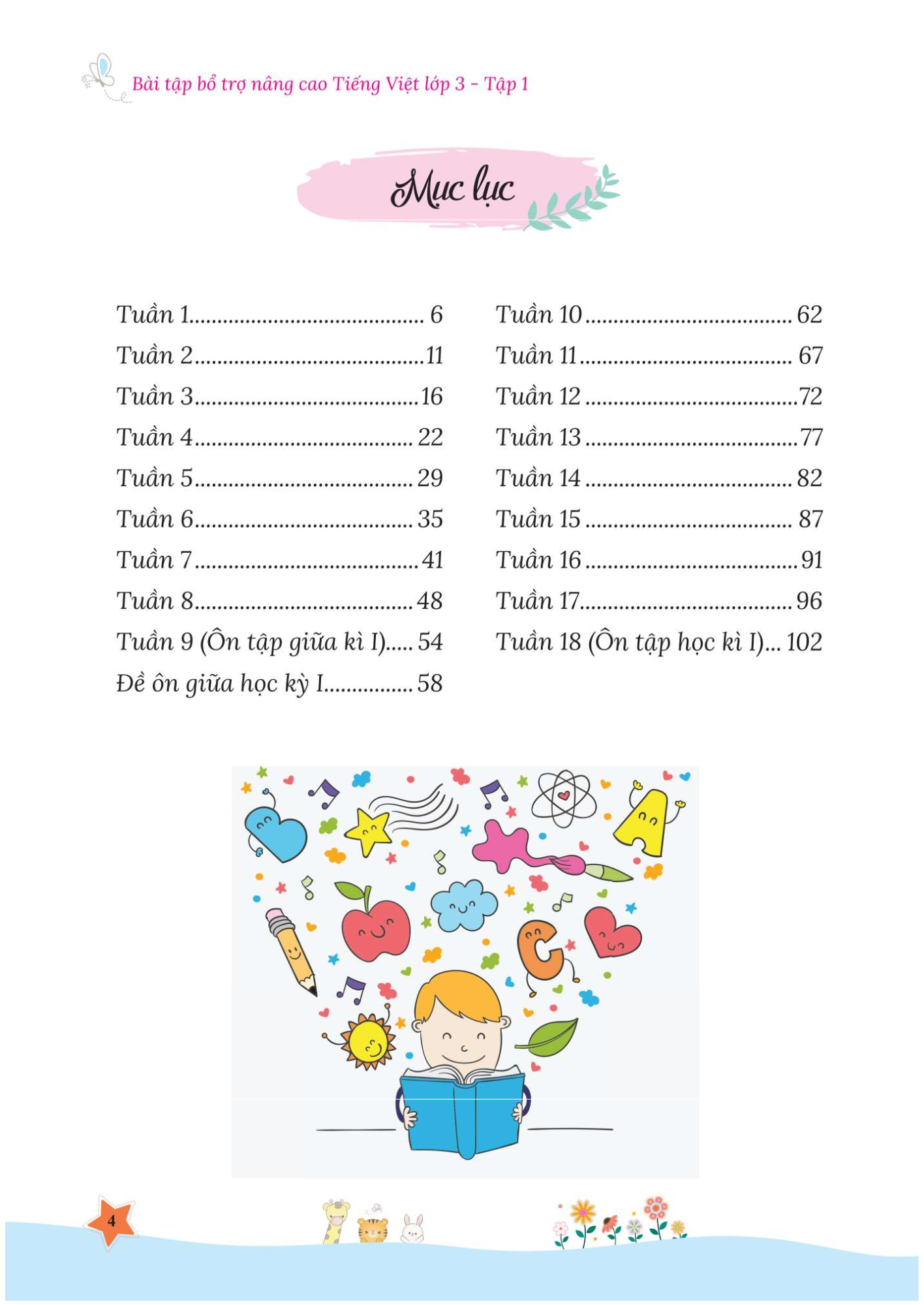 Toàn bộ kiến thức trong cuốn sách Bài Tập Bổ Trợ Nâng Cao Tiếng Việt Lớp 3 đều bám sát nội dung trong sách giáo khoa mà các con được học trên lớp.