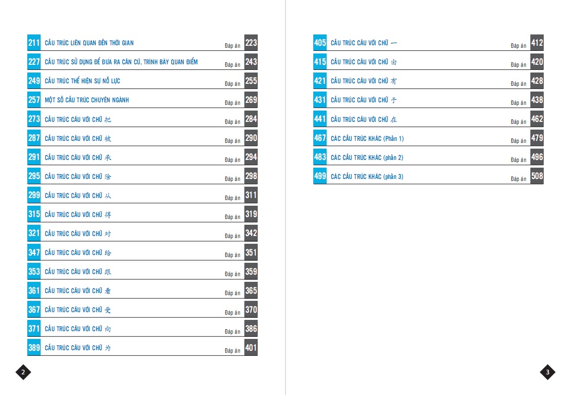 - NỘI_DUNG Tuyển tập gần 600 cấu trúc ngữ pháp, câu trúc cố định ứng dụng thực tiễn 100% trong đời sống, văn nói và văn viết, dịch thuật ( Đã được kiểm duyệt kỹ bởi chuyên gia ngôn ngữ Trung Quốc). Sách có kèm thêm ví dụ, bài tập và đáp án tham khảo. Phù hợp với các đối tượng từ sơ đến cao cấp ( mới học từ Hán ngữ 1, Boya1 đến trình độ cao biên phiên dịch đều có thể sử dụng được)