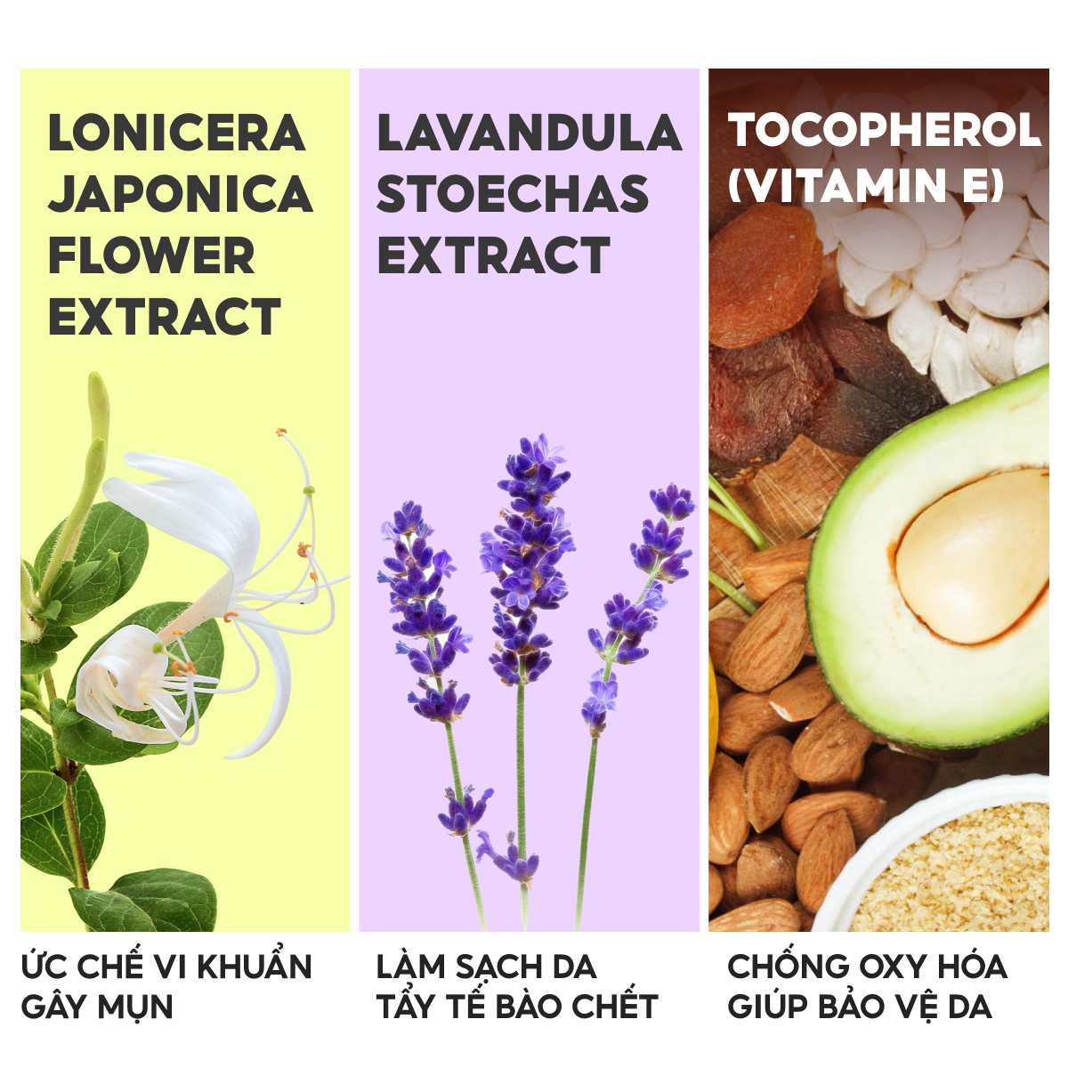 Với AHA chiết xuất từ 3 loại axit trái cây tự nhiên giúp làm mềm lớp sừng và làm sạch các tế bào chết và bị tổn thương, cho lỗ chân lông luôn được thông