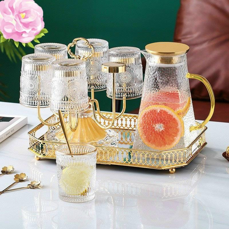 Bộ sản phẩm gồm: 1 bình nước + 6 cốc + Khay + giá úp cốc