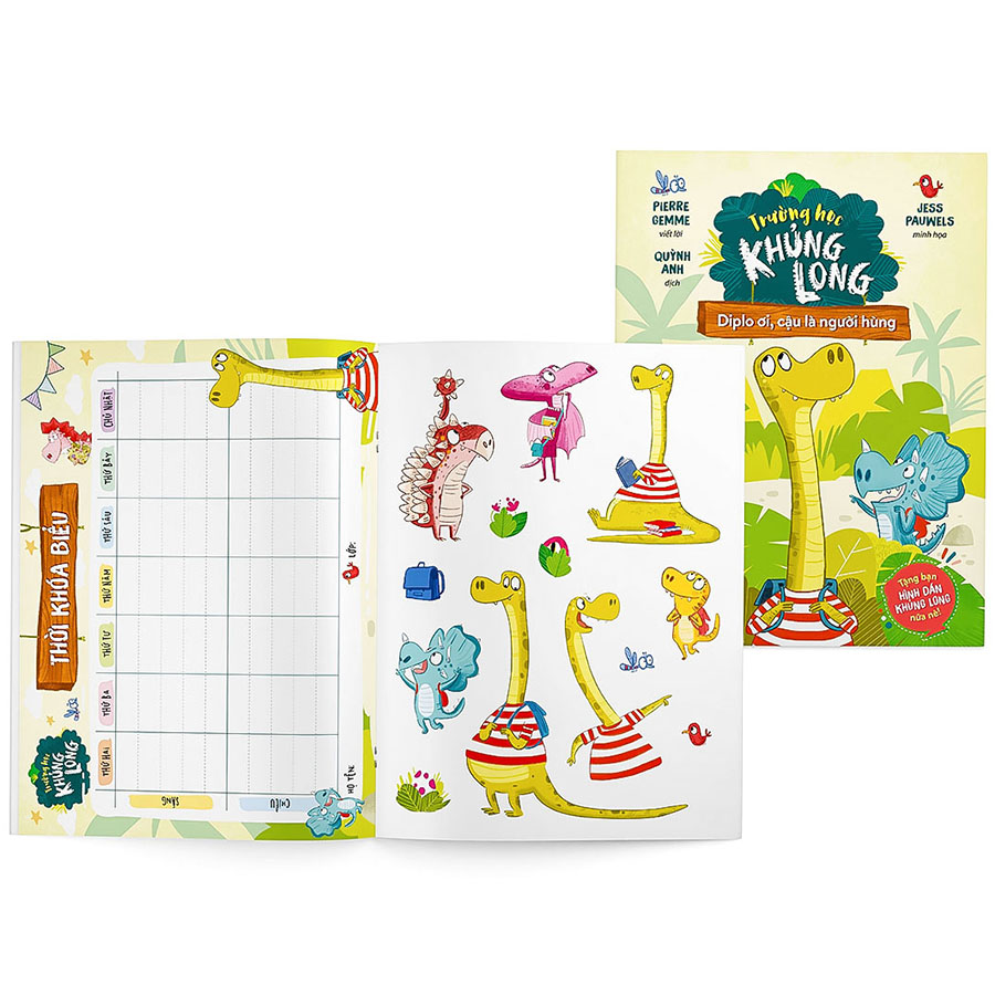 Cùng xem chuyện gì đã xảy ra với các bạn nhỏ ở TRƯỜNG HỌC KHỦNG LONG nha! Và đừng bỏ qua bộ sưu tập hình dán khủng long siêu dễ thương, học thêm từ mới cùng nhiều thông tin thú vị về các loài khủng long trong bộ sách này nữa!