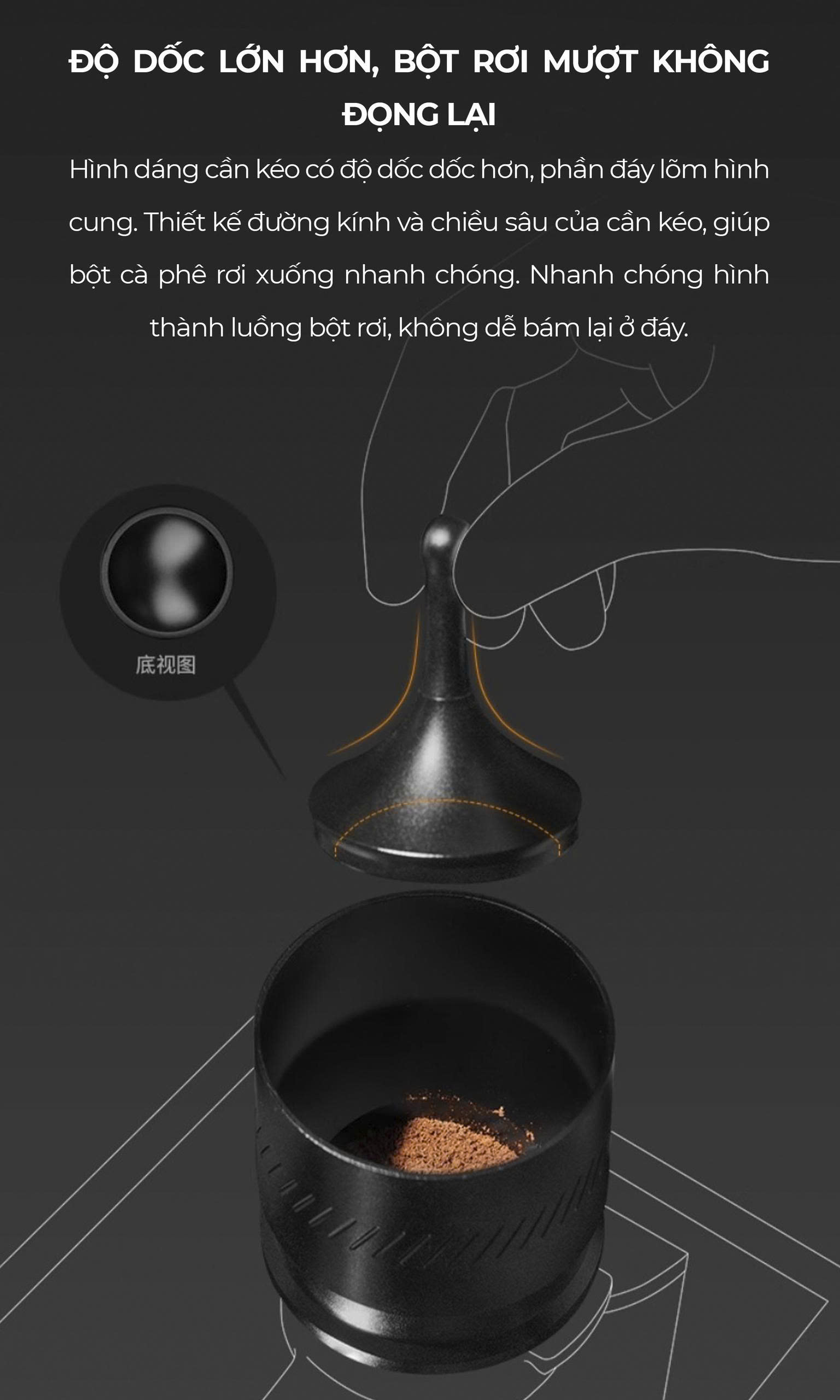 - Dosing hứng đong cà phê THOR • Thiết kế nghiêng dễ đổ bột, hạn chế bắn tung • Phân phối bột đều, chuẩn từng shot