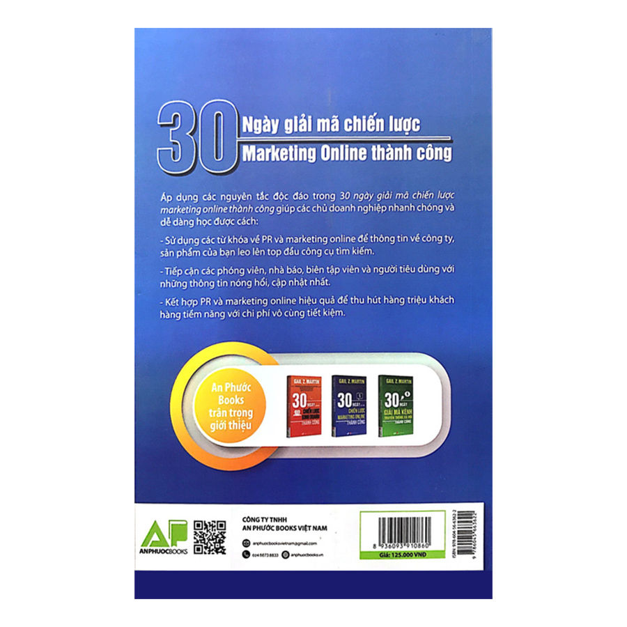 Với cuốn sách 30 ngày giải mã chiến lược marketing online thành công bạn sẽ nâng cao hiệu quả marketing và PR online với chi phí tiết kiệm nhất. Còn cuốn sách 30 ngày giải mã kênh truyền thông xã hội thành công được thiết kế với mục đích giúp bạn xây dựng một nền tảng truyền thông xã hội chiến lược cho doanh nghiệp của mình, tập trung vào việc tiếp cận đối tượng mục tiêu phù hợp nhất nhằm đạt được mục đích kinh doanh hàng đầu của mình.