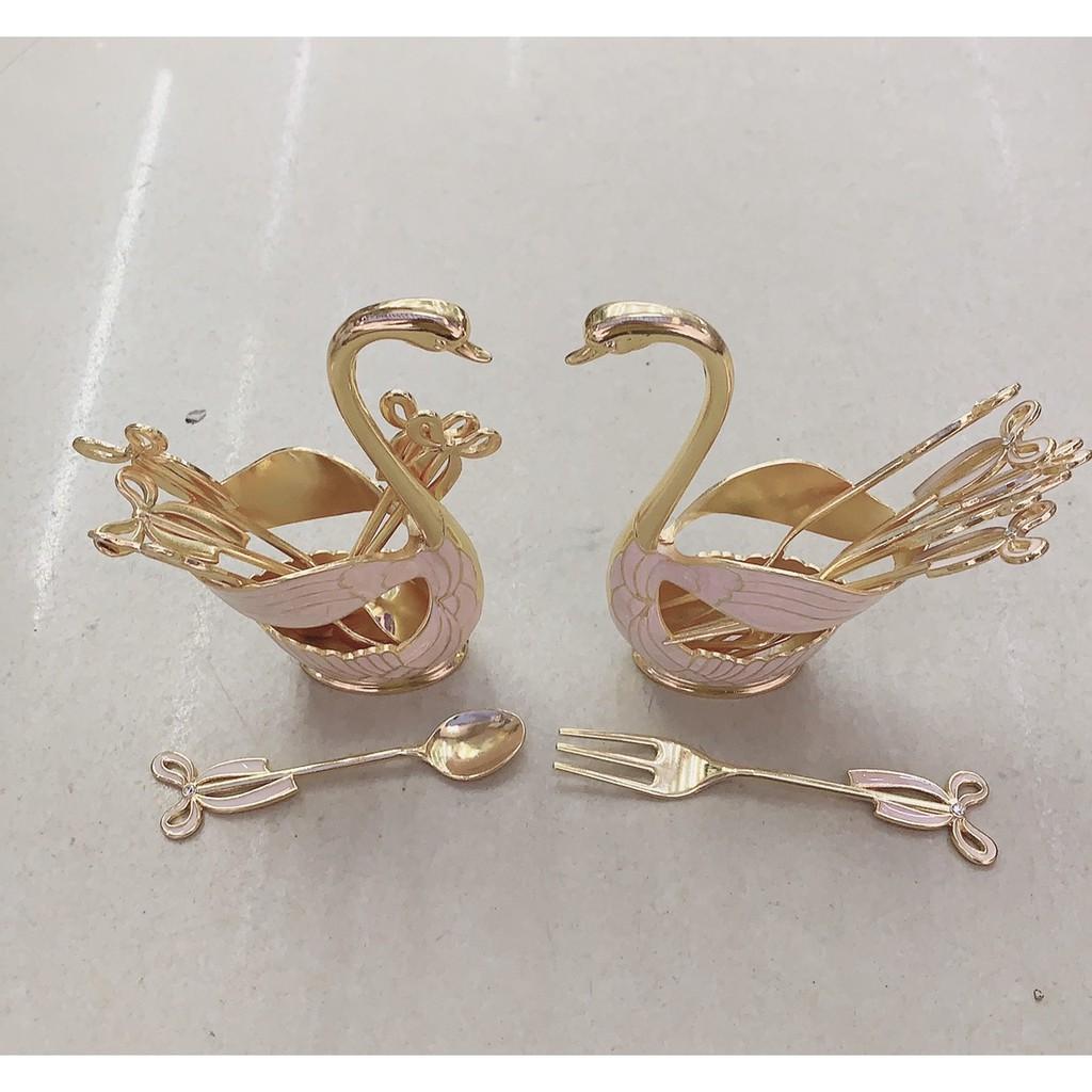 Sản phẩm bao gồm 1 thiên nga đính 2 viên đá Sawaski + 6 thìa hoặc nĩa Chất liệu: Hợp kim Bảo hành màu: 5 năm An toàn sức khỏe