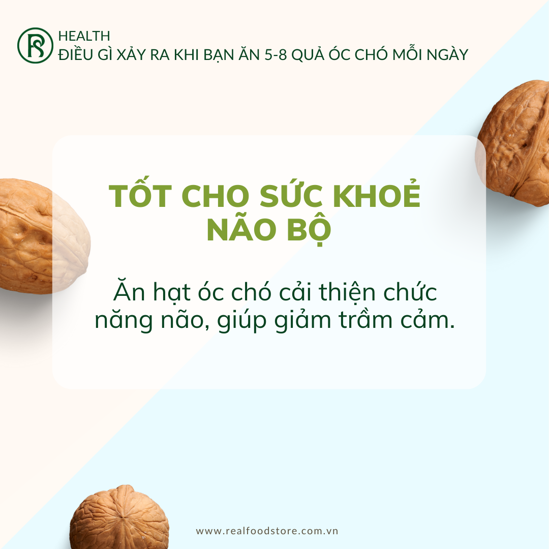 HẠT ÓC CHÓ REAL FOOD là dòng sản phẩm nguyên hạt, có vỏ mỏng, nhân dày; Phù hợp để cung cấp dinh dưỡng cho Mẹ mang thai, Người lớn tuổi, Trẻ em đang trong giai đoạn