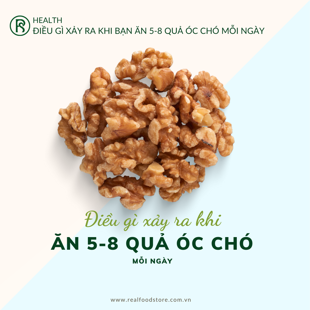 (Hình ảnh mẫu mã, bao bì sản phẩm sẽ thay đổi theo từng giai đoạn) HẠT ÓC CHÓ REAL FOOD được rang giòn, khi ăn có vị ngọt bùi, béo. Phù hợp để cung cấp dinh