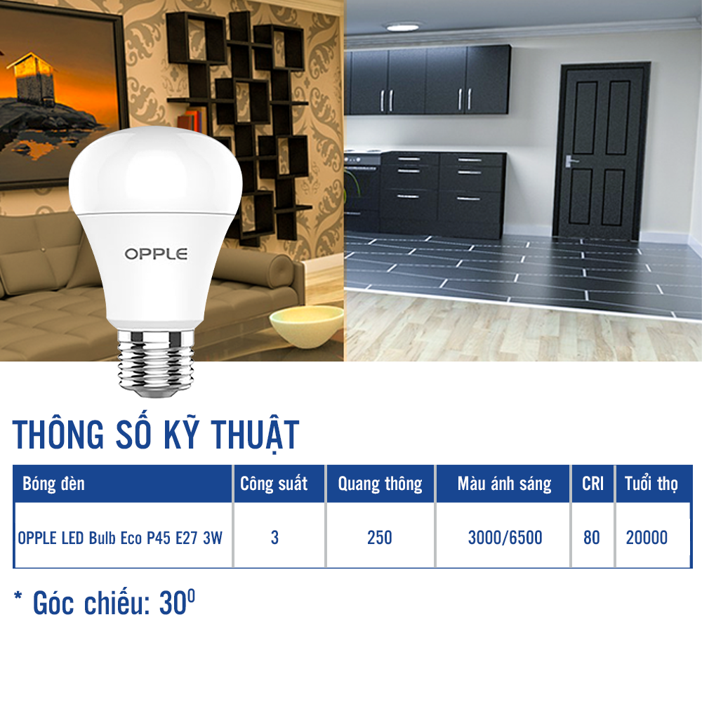 [COMBO MUA 10 BÓNG] Bóng Đèn OPPLE LED Bulb Ecomax E27 P45-E27-3W- Tiết Kiệm Điện, Tuổi Thọ Cao Lên Đến 20.000 Giờ