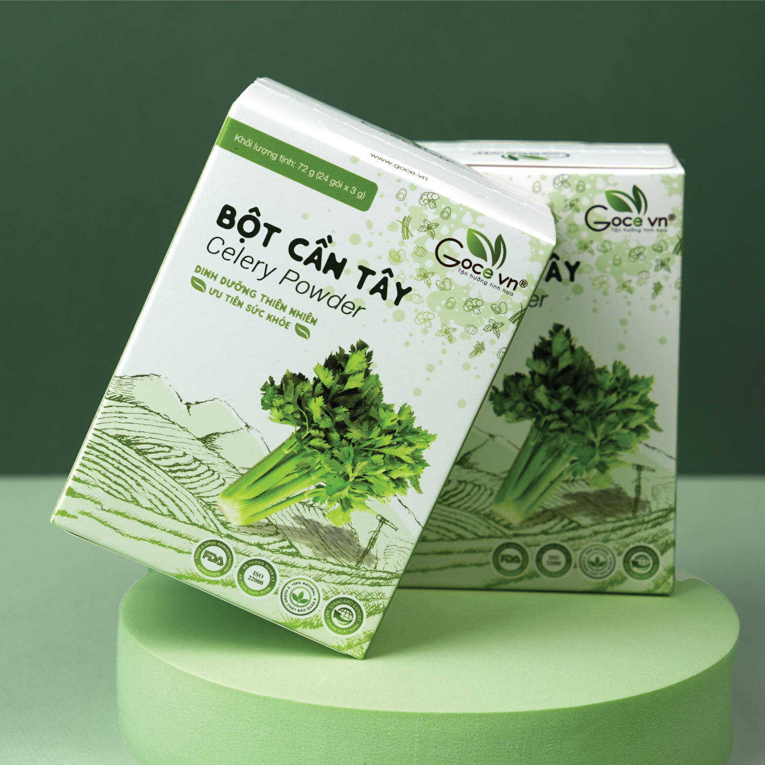 - Cho gói bột cần tây (3g) vào lượng nước ấm vừa đủ. Khuấy đều và thưởng thức.