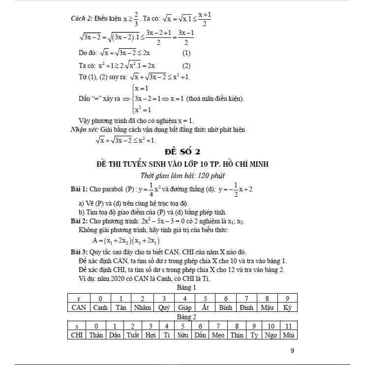 A. Các đề toán thi vào lớp 10 năm học 2020 – 2021 (Hệ đại trà)
