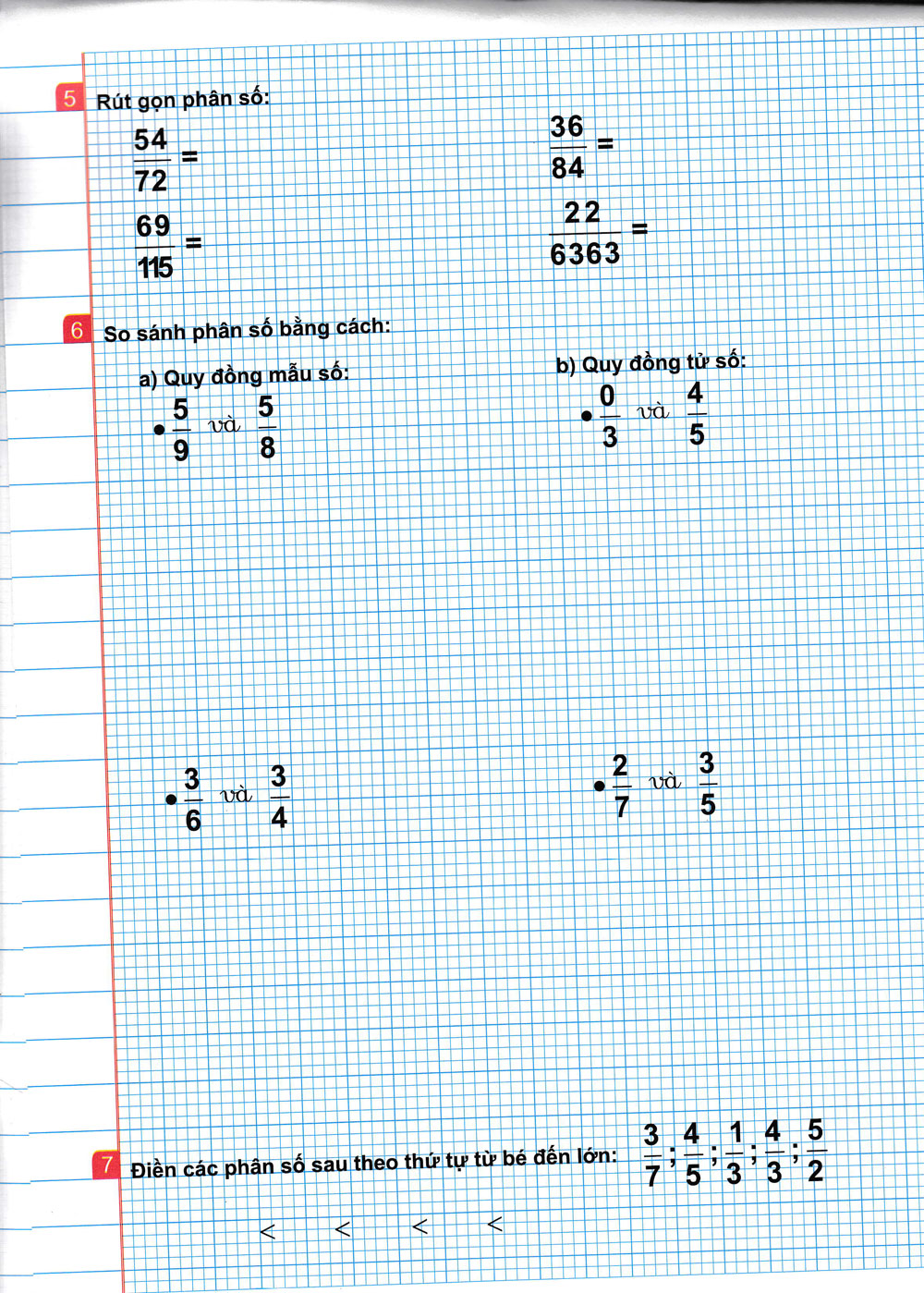 Phần Toán học, sẽ có các bài tập về phân số, số thập phân, rút gọn và quy đồng mẫu số,
