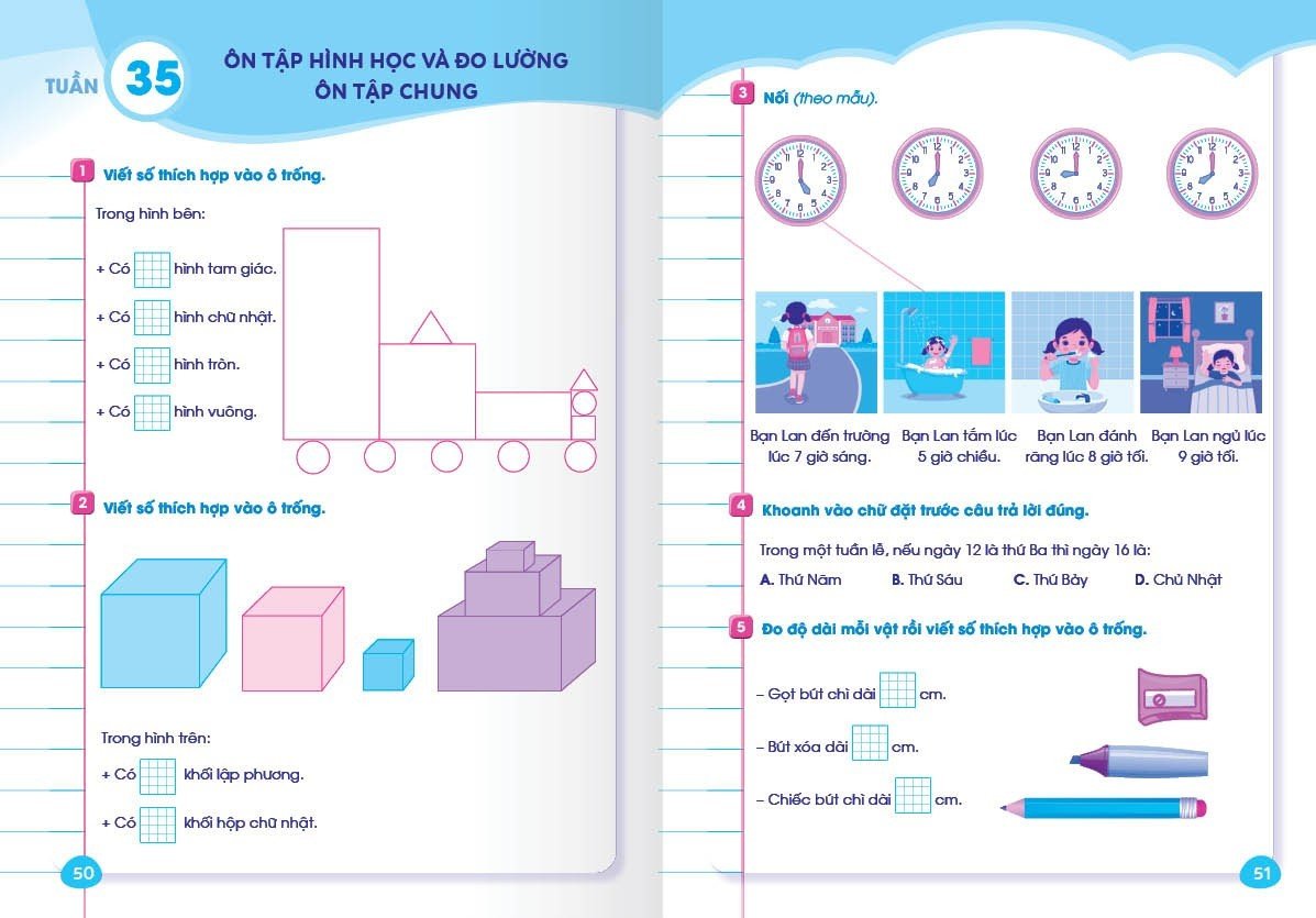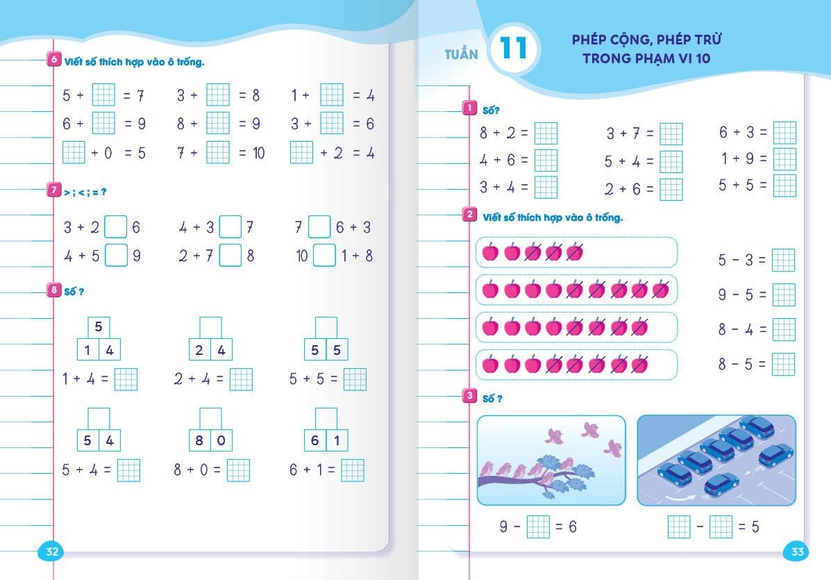 Combo - BÀI TẬP CUỐI TUẦN Toán 1 là tài liệu hữu ích để ôn tập và củng cố kiến thức Toán học, giúp HS làm chủ kiến thức, chủ động học tập; cha mẹ nắm bắt được lực học của con, phối kết hợp với GV và nhà trường, giúp con đạt thành tích cao trong môn Toán.