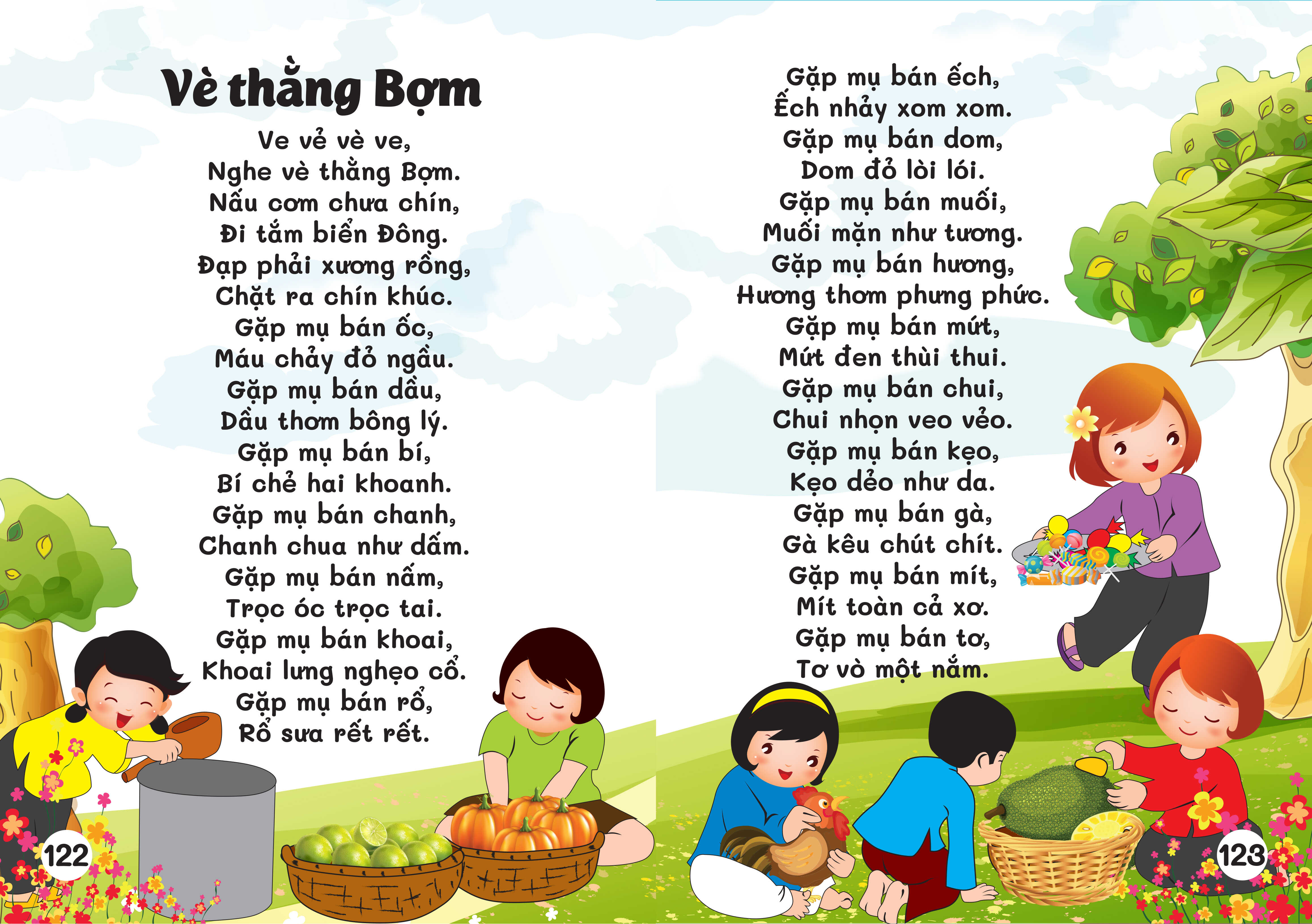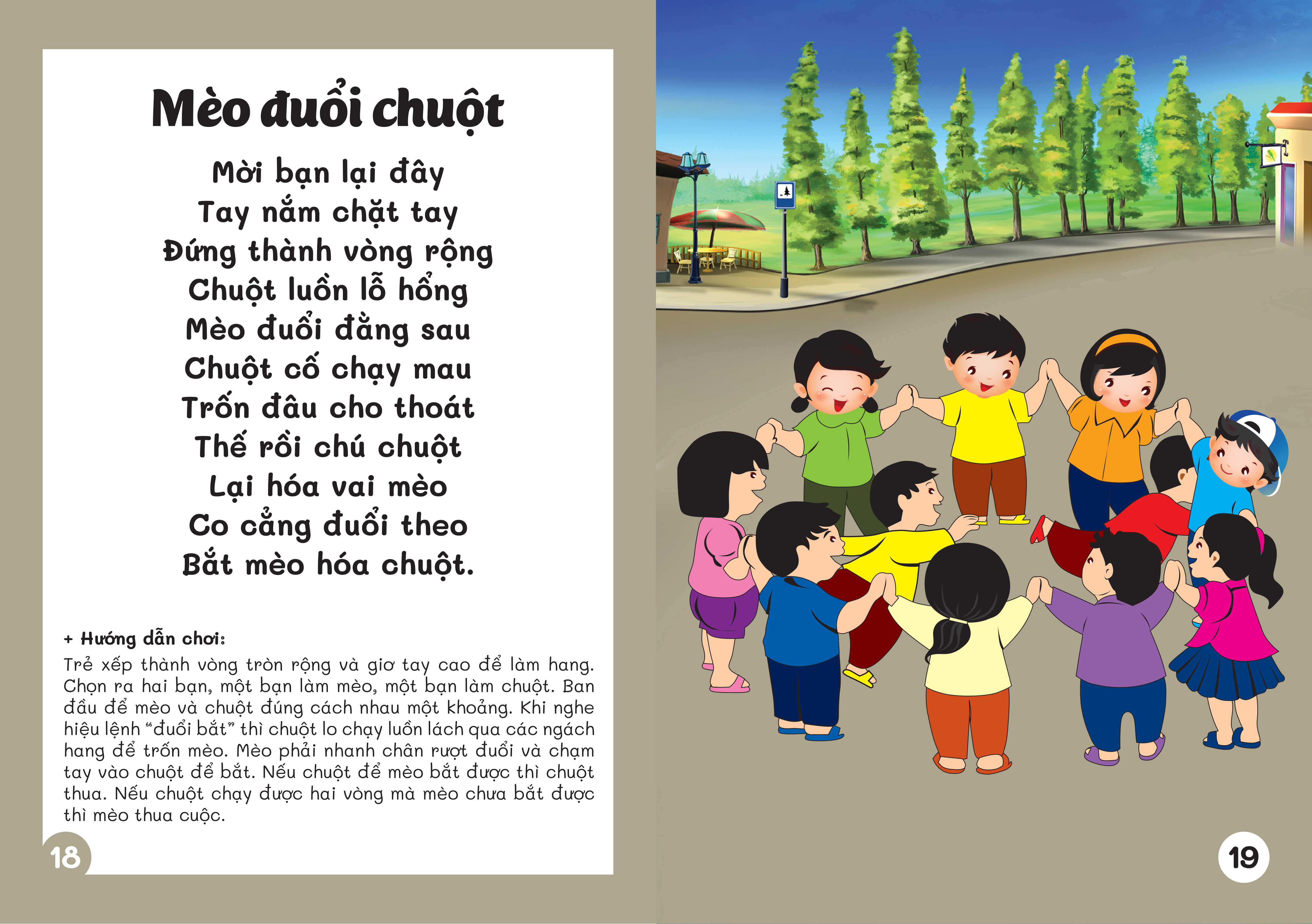 Quyển 2: Đồng dao cho bé - Các trò chơi dân gian - Các câu hát vè dân gian - Bé từ 3 đến trở lên (dành cho bé tập nói) Trong sách gồm 2 Phần: Phần 1: 32 trò chơi dân gian Phần 2: 24 bài hát vè dân gian