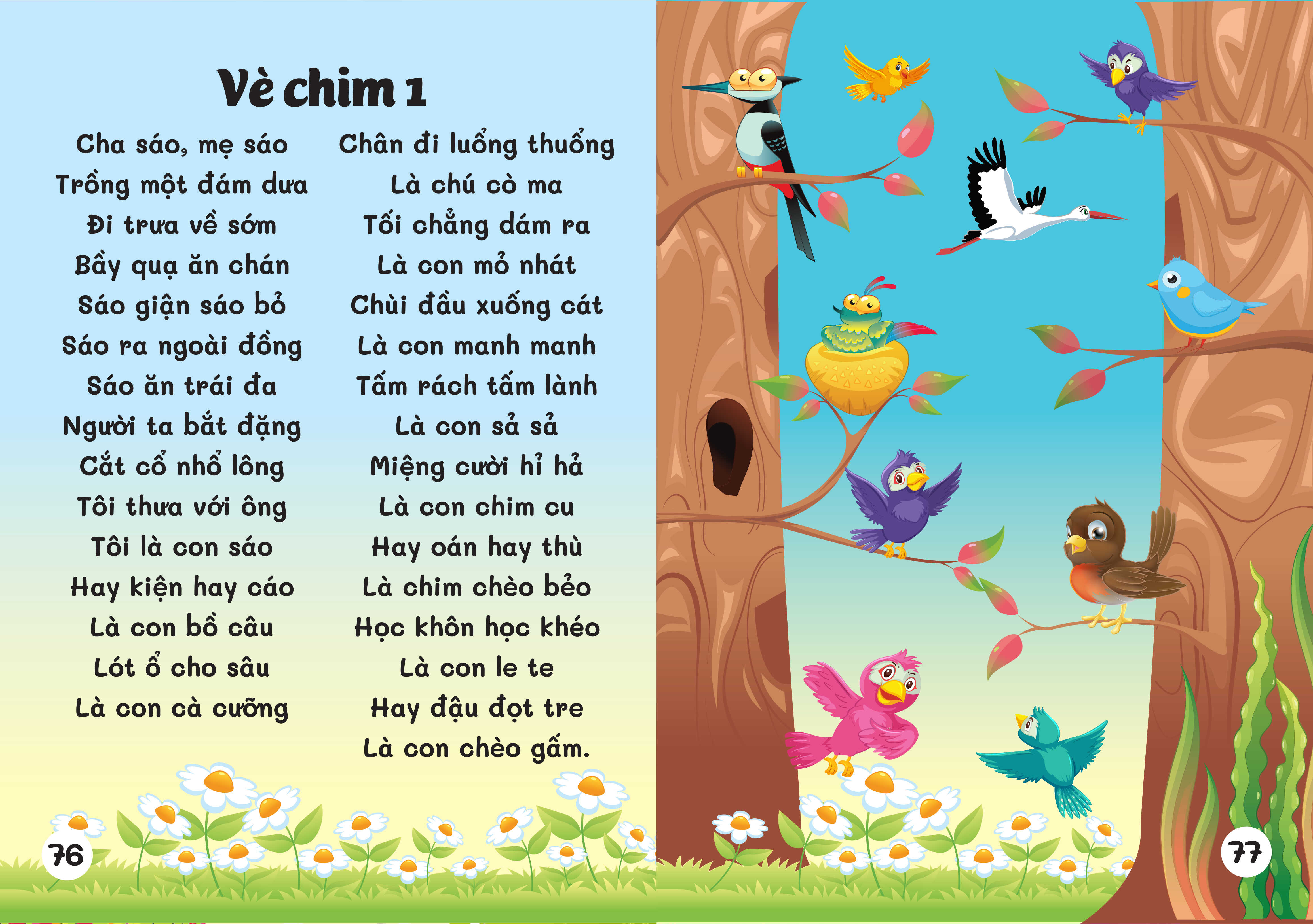 Quyển 1 - Đồng dao cho Bé - Thế giới quanh ta và cuộc sống động vật, thực vật quanh bé - Bé Từ 3+ trở lên (Cho bé tập nói) Trong sách gồm có 2 Phần: Phần 1: Có 39 bài về Thế giới quanh ta và cuộc sống. Phần 2: có 20 bài về Động vật, Thực vật quanh bé.