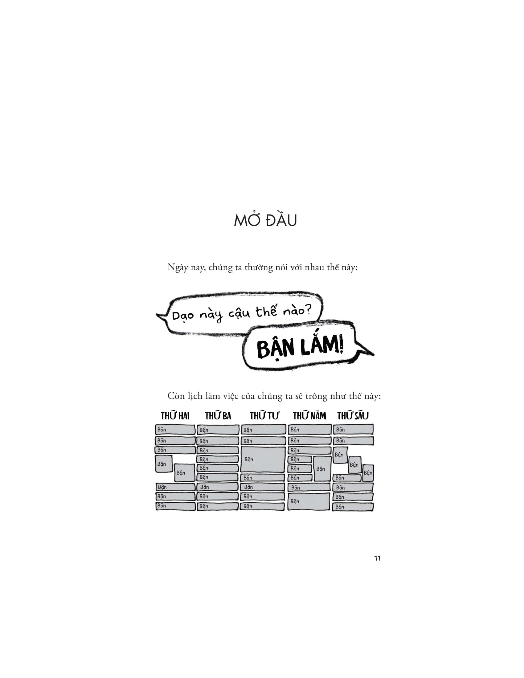 Trong một thế giới mà các thông tin liên tục được cập nhật và mỗi ngày làm việc đều giống như một cuộc chạy đua, thì tình trạng sao nhãng, mất tập trung và cạn kiệt năng lượng gần như đã trở thành một trạng thái mặc định. Nhưng bạn có buộc phải bận rộn suốt ngày suốt tháng như vậy không? Điều gì sẽ xảy ra nếu bạn có thể bước ra khỏi guồng quay điên cuồng, để dành lại thời gian, sự tập trung chú ý và năng lượng của m.ình?