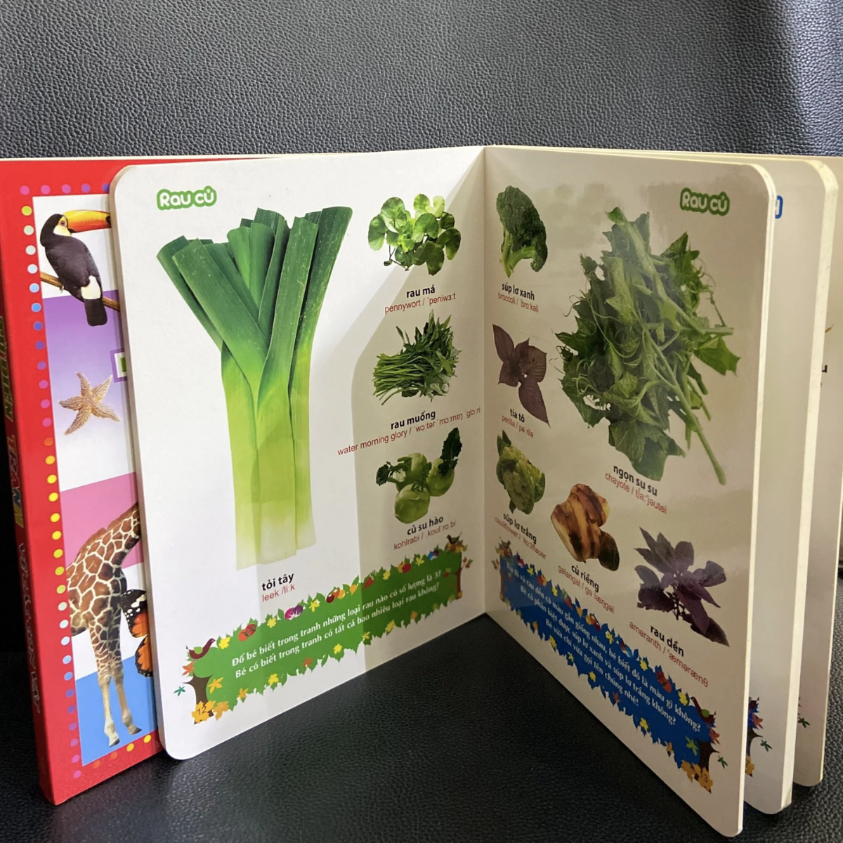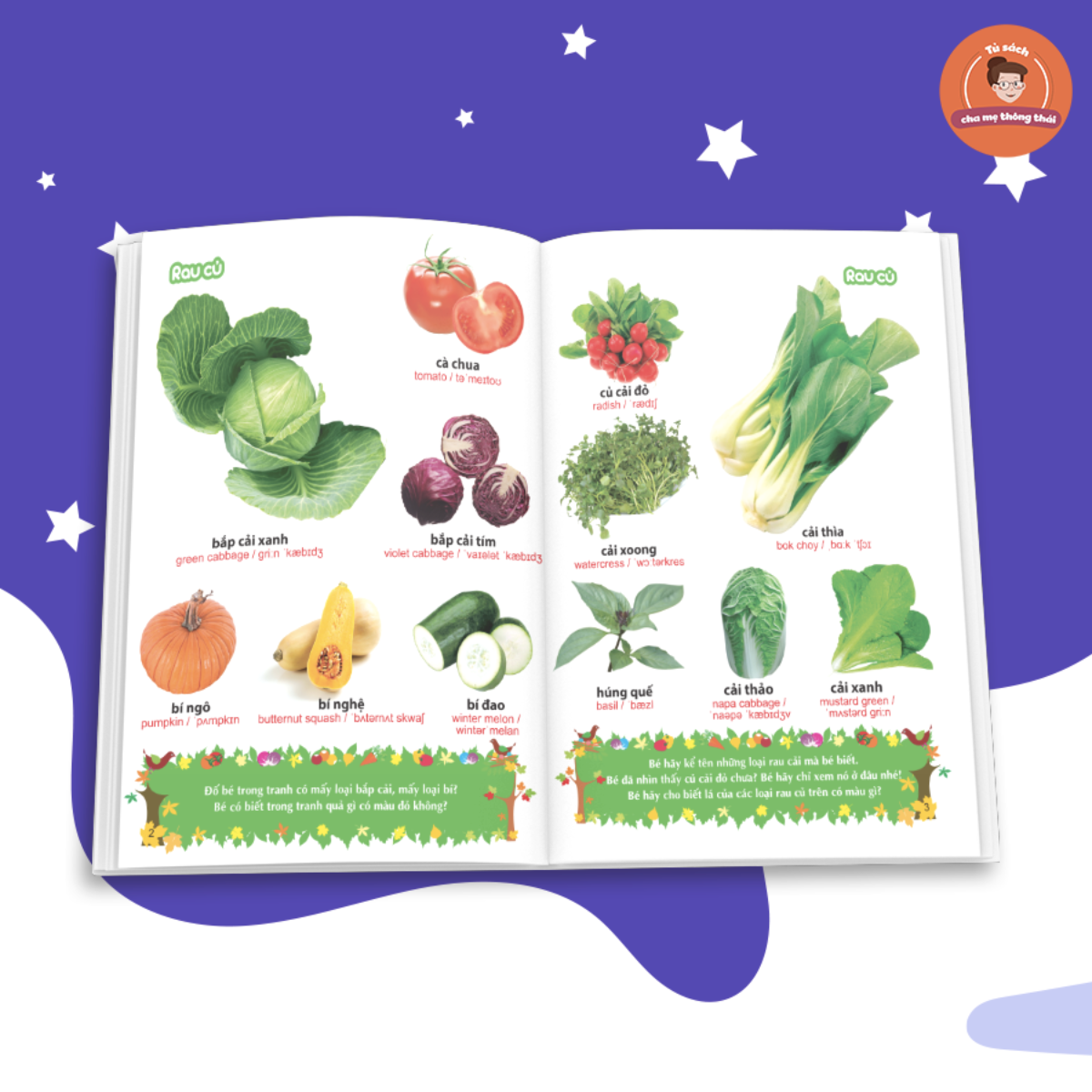 Cuốn sách với nhiều hình ảnh sinh động về các loại rau củ quả khác nhau giúp bé phát triển khả năng nhận biết. Cuốn sách còn là bộ sưu tập với nhiều hình ảnh gần gũi quen thuộc giúp bé trở nên thích thú.