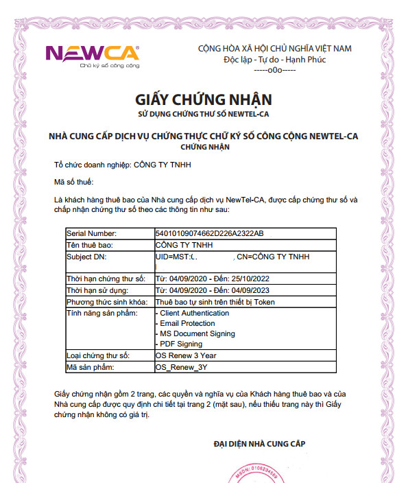 - Sản phẩm bao gồm 1 usb token chữ ký số với thời hạn 3 năm + 1 tài khoản hóa đơn điện tử tại website của nhà cung cấp Cyberbill. - Sản phẩm/dịch vụ