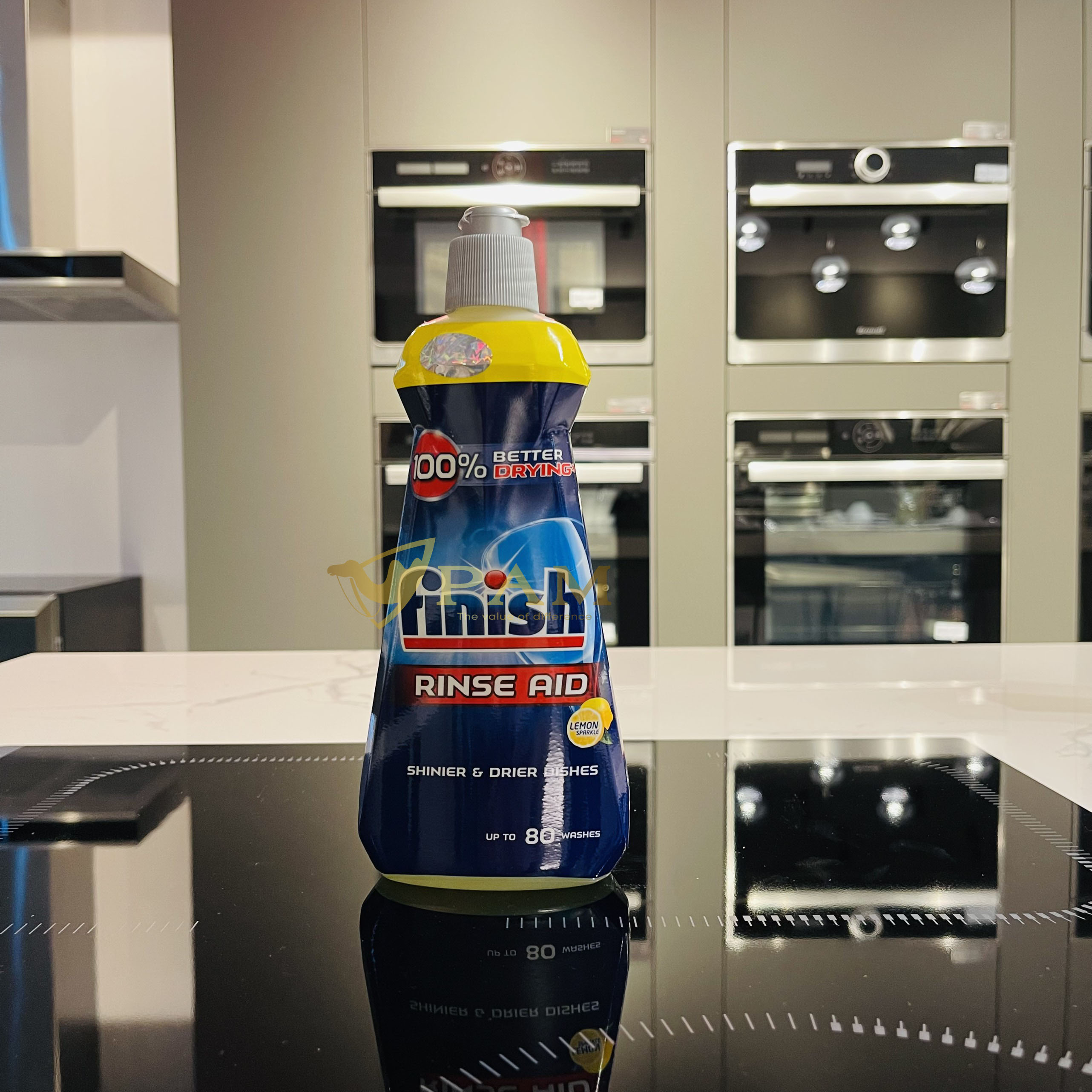 Nước làm bóng và khô chén, đĩa Finish Dishwasher Shine & Dry Regular là chất trợ rửa riêng biệt có tác dụng làm bóng để chén đĩa, các đồ sành sứ, thủy tinh, inox và các dụng cụ nhà bếp của bạn được làm khô mà chưa cần đến khâu sấy khô.