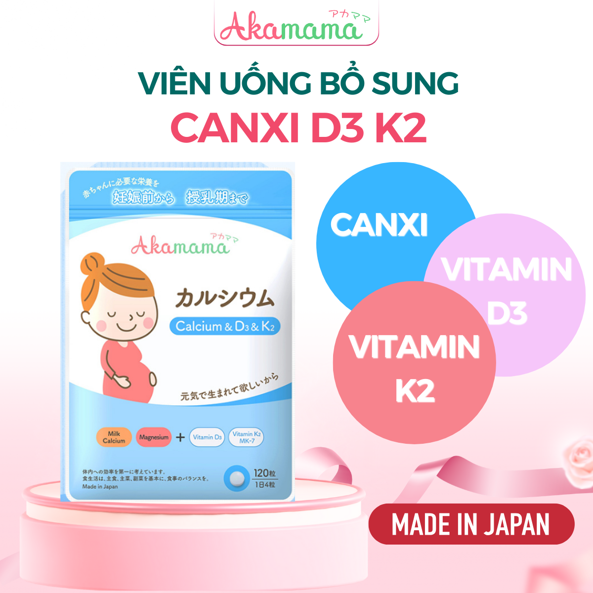 3. Viên Uống Bổ Sung Canxi D3 K2 Cho Mẹ Bầu Hỗ Trợ Phát Triển Hệ Xương Của Bé, Viên Nhỏ, Không Vị, Dễ Uống Gói 120 Viên Akamama Nhật Bản