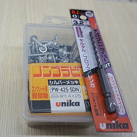 ✨Combo Vít bê tông 4mm đầu nón vành PW425 & Mũi khoan tường 3.2mm đuôi lục giác Unika (không cần dùng tắc kê nhựa)